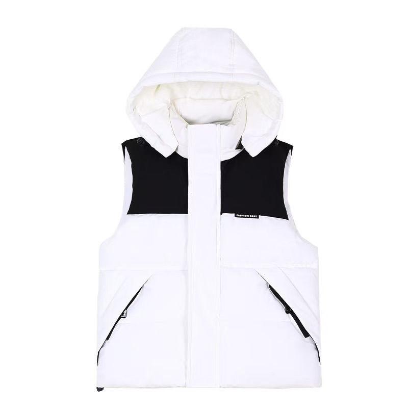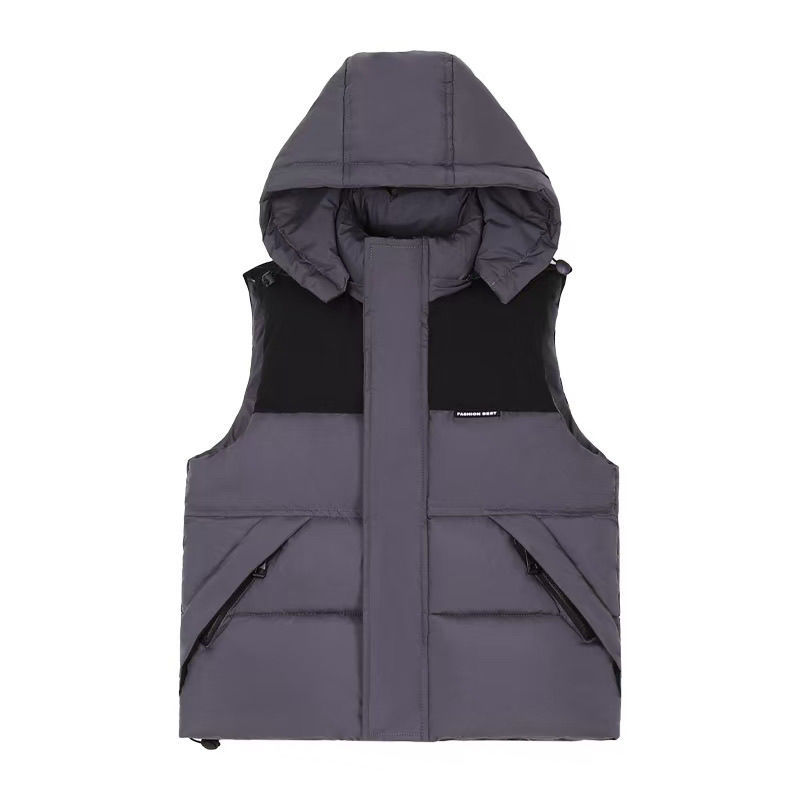 도매 신상 두꺼운 인스 스타일 아동복 배색 조끼, 분리형 모자 디자인, 여행용, 다용도, 배색 아동 조끼스토어 가기