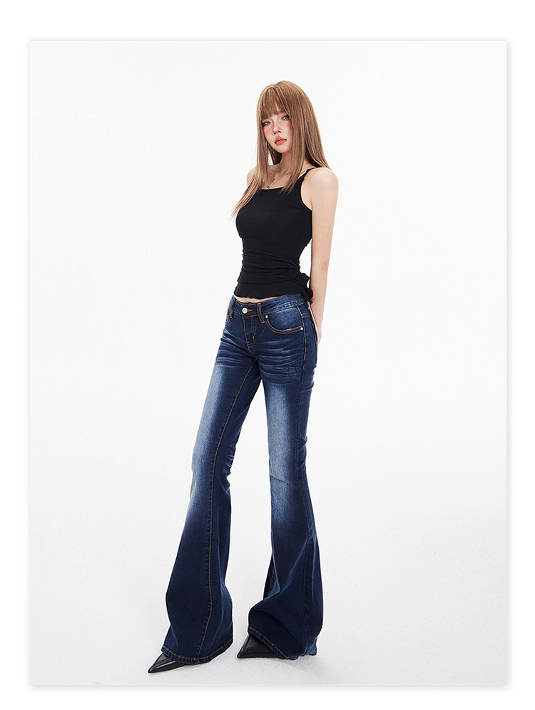 아메리칸 스타일 스파이스 소녀 레트로 낮은 허리 플라 바지 슬림 핏 슬리밍 스트레치 봄/여름 청바지 여성 및 긴 바지