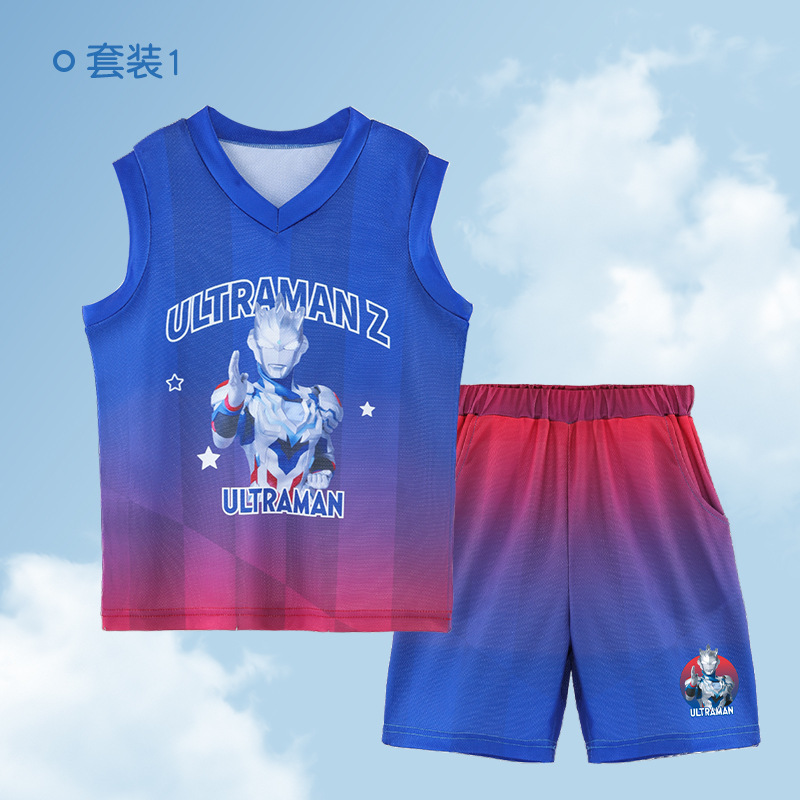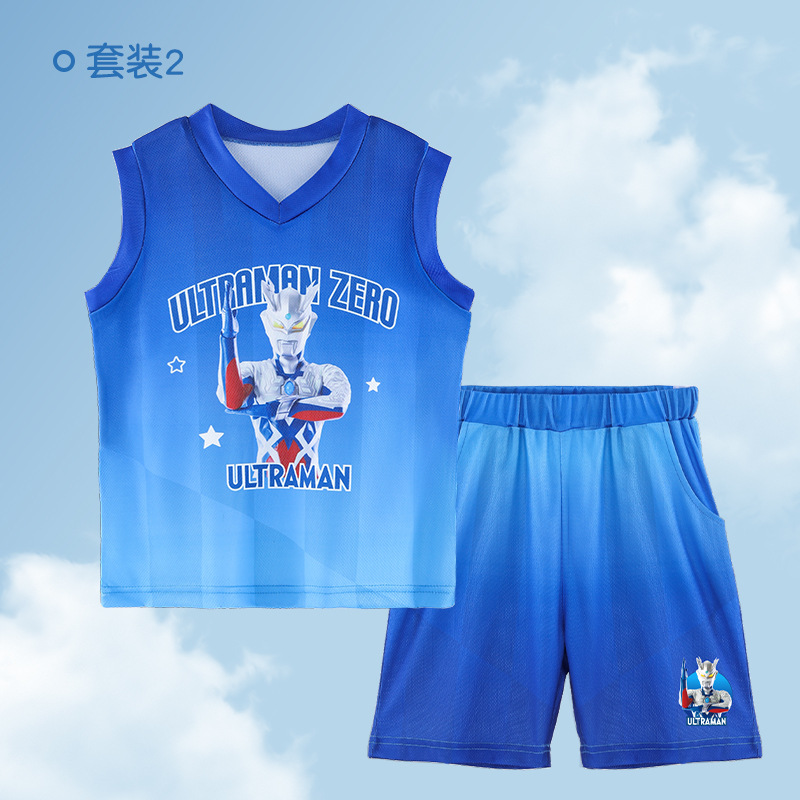 세일러 보이즈 스포츠 조끼 반바지 세트 제타 민소매 소년 농구 세트 얇은 빠른 건조 통기성 여름
