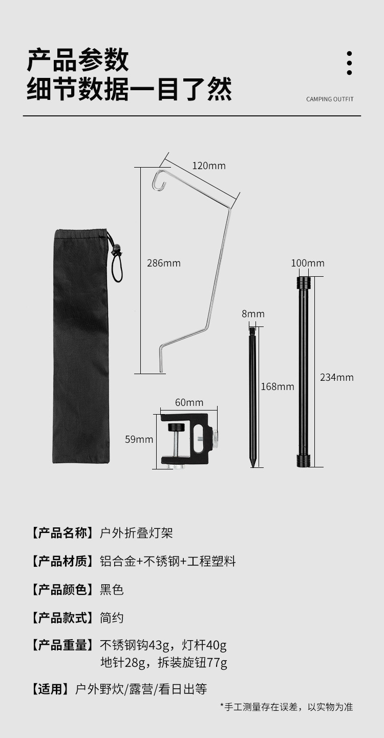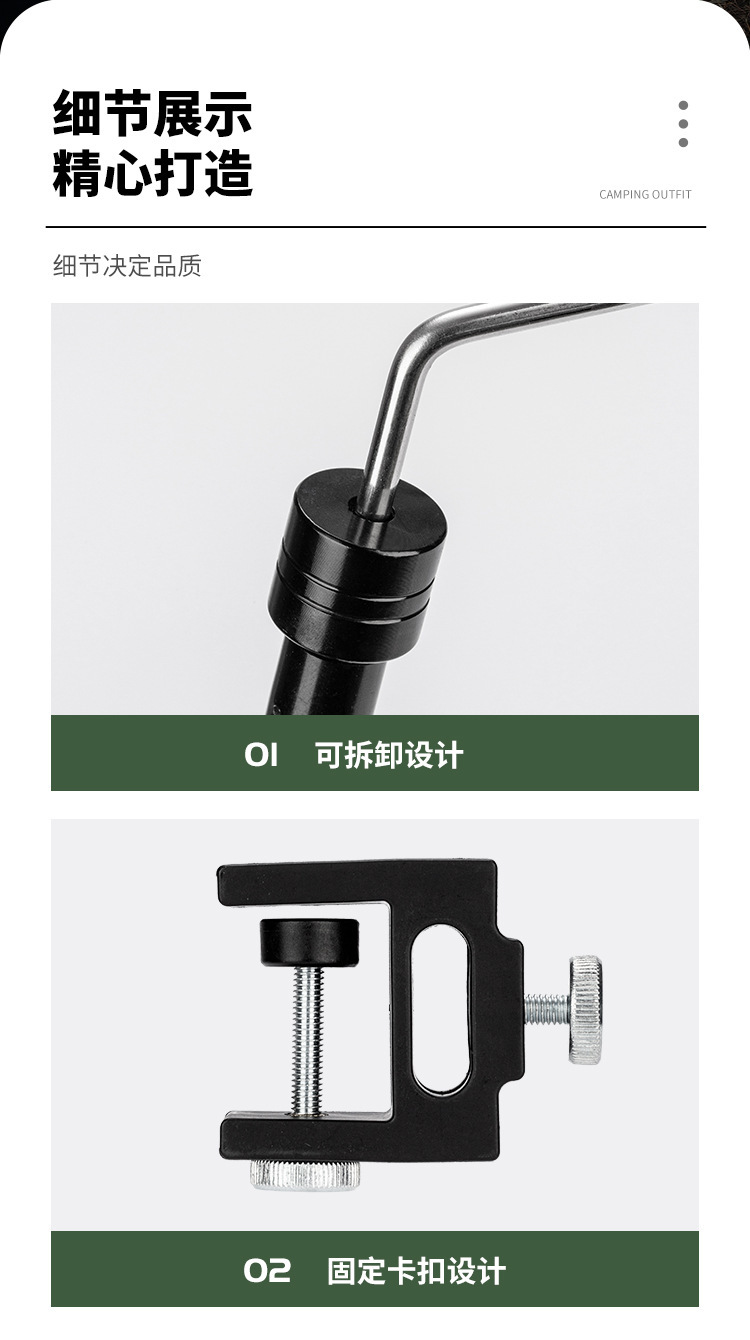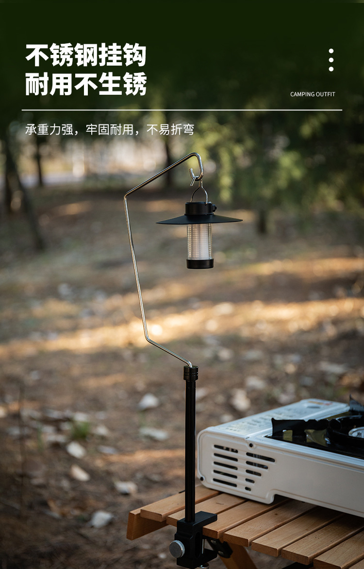 새로운 야외 캠핑 데스크탑 램프 폴 캠프 램프 랙 초경량 휴대용 알루미늄 합금 조명 분위기 램프 브래킷 후크