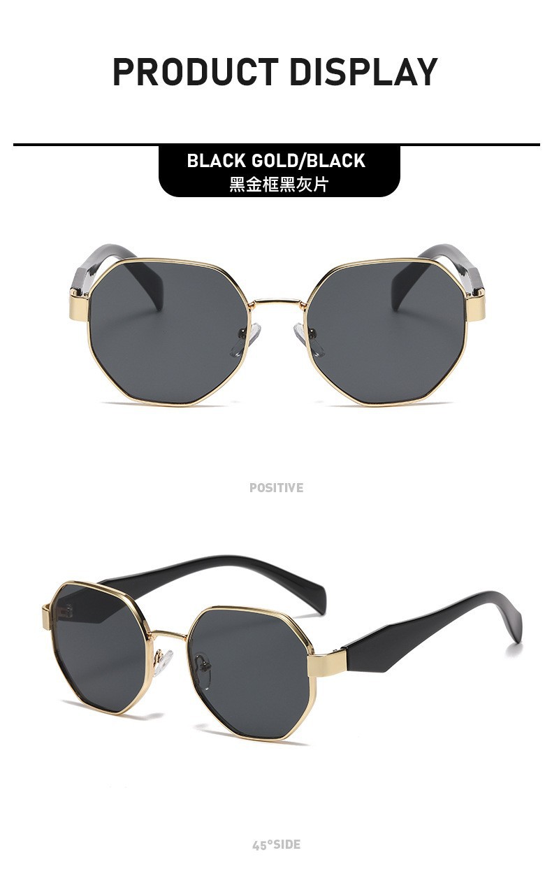 폴리곤 라운드 프레임 대형 프레임 선글라스 더블 그레이 스트리트 샷 선글라스 풀 프레임 펑크 파티 유니섹스 안경스토어 가기