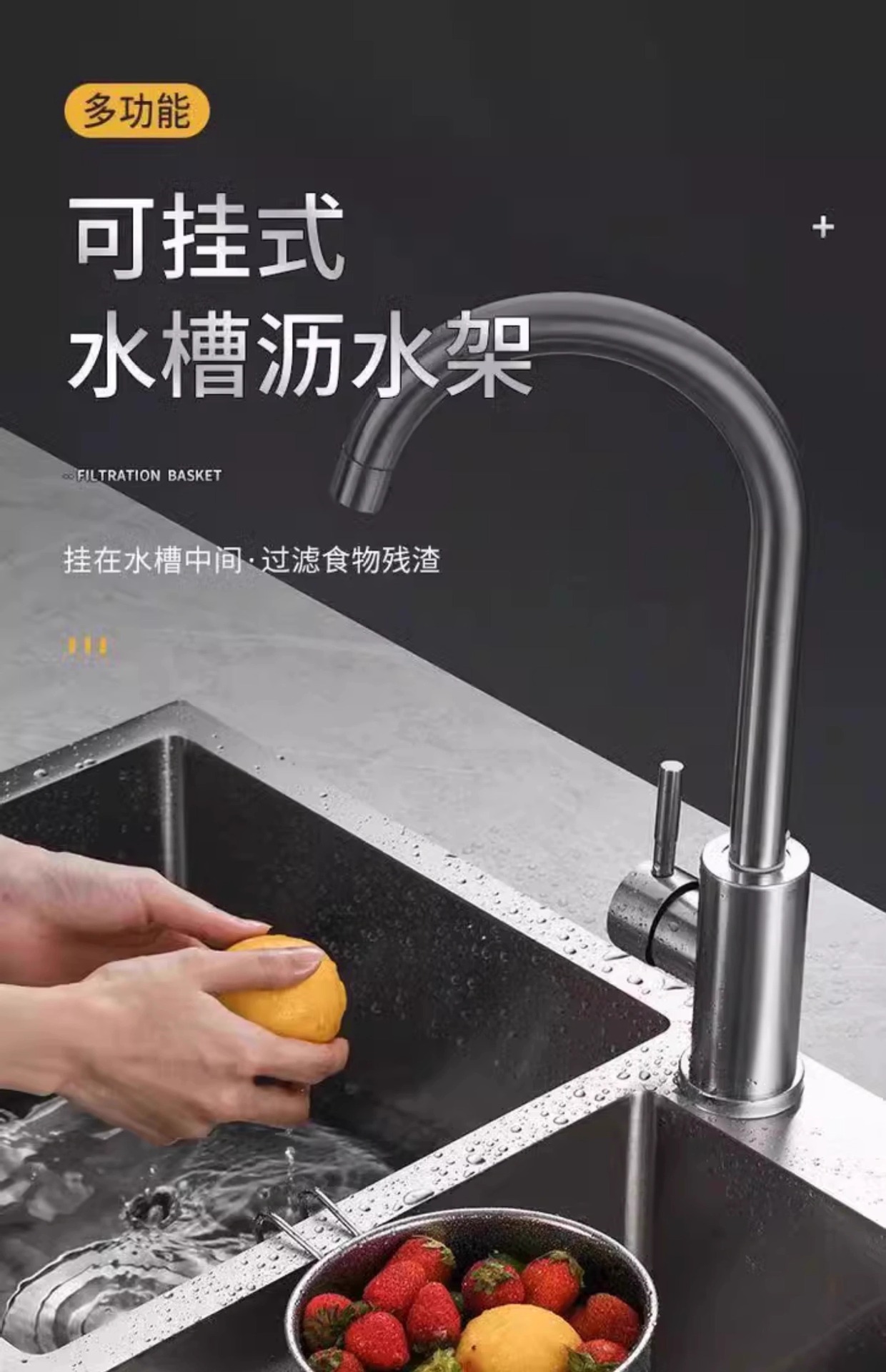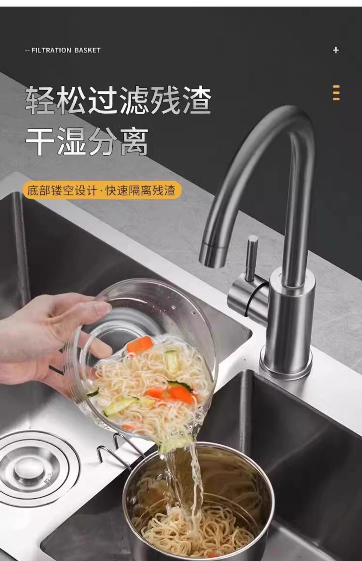 스테인레스 스틸 싱크 필터 바구니 주방 매달려 배수 다기능 야채 및 과일 저장 젓가락 스푼 대형 분리기