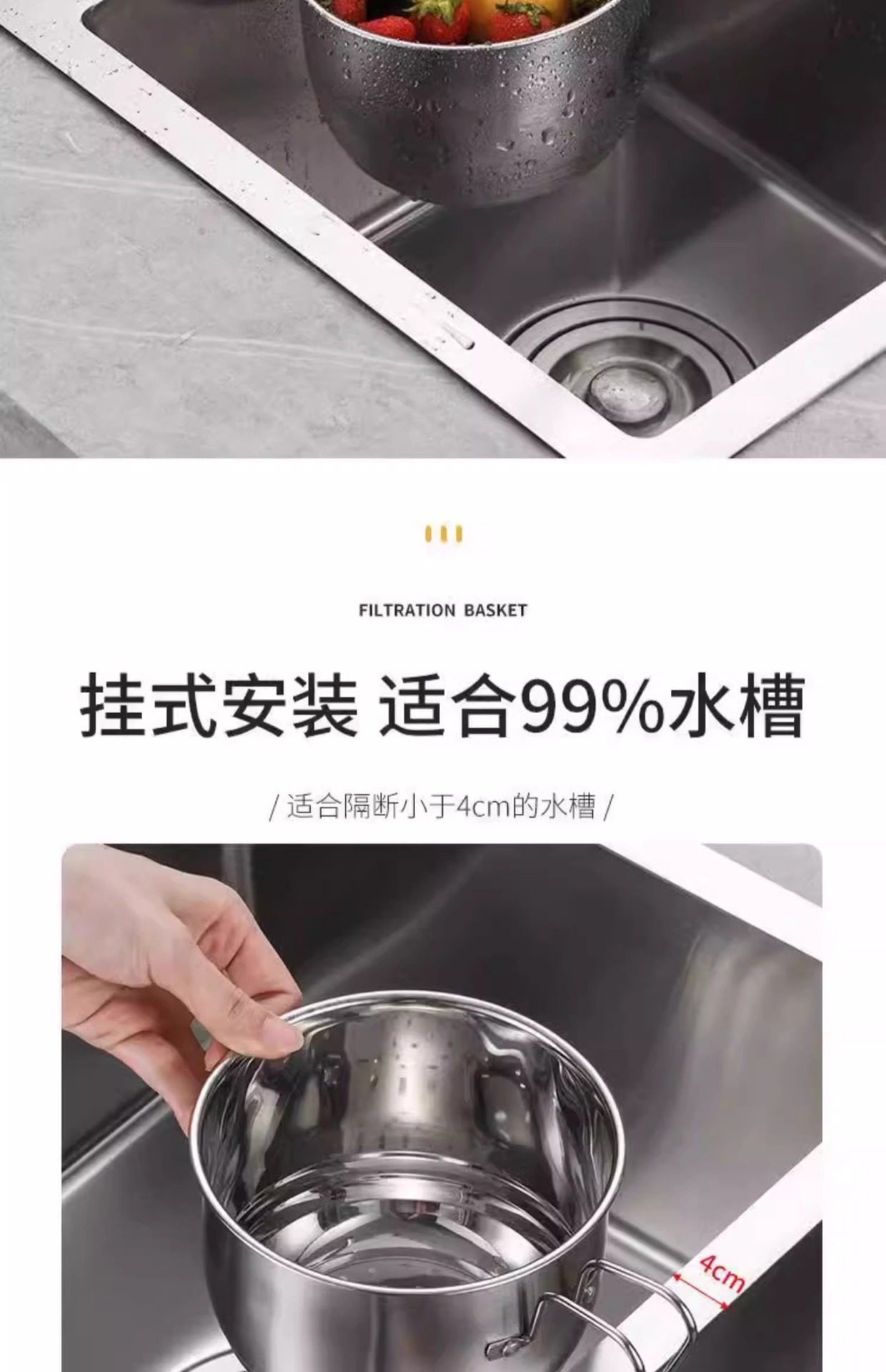 • [2개 팩] 스테인레스 스틸 배수 바구니