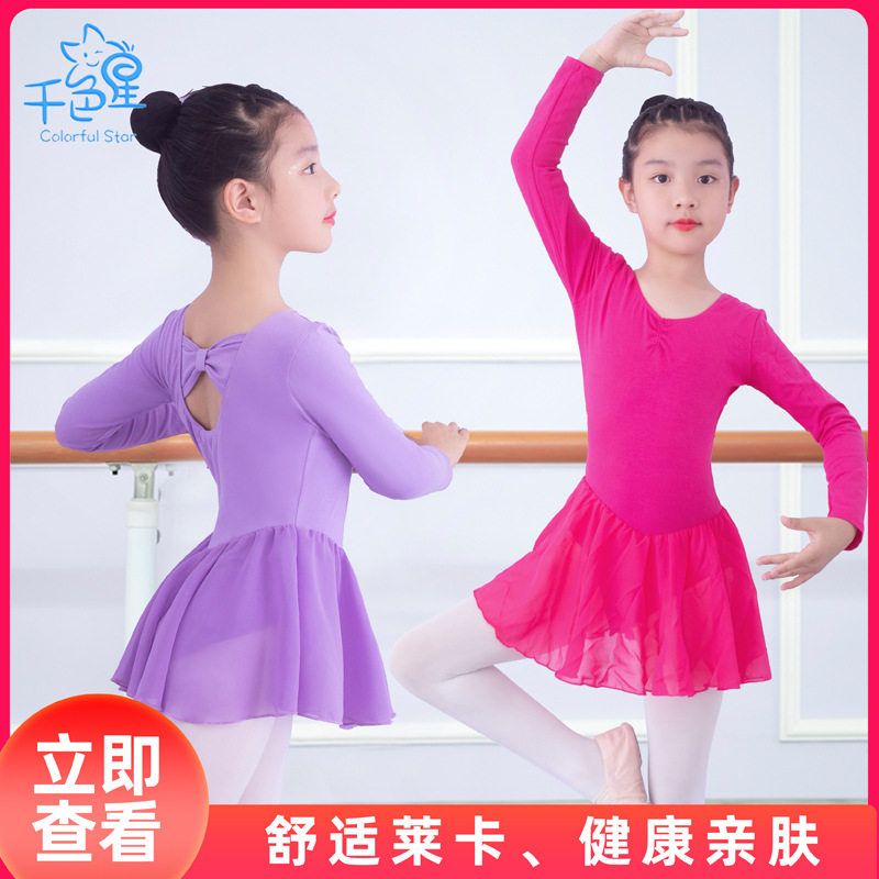 어린이 무용옷 연습옷 여아 긴팔 봄 · 가을 중국 무용시험 의류 발레 치마 세트스토어 가기