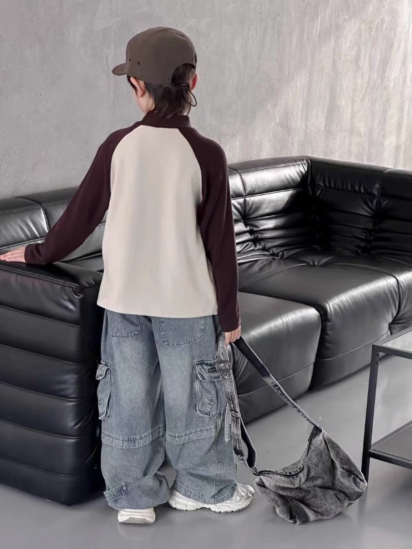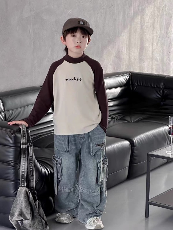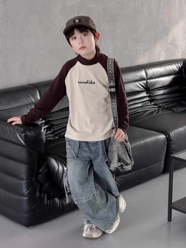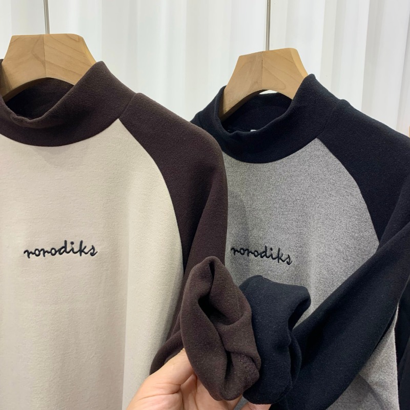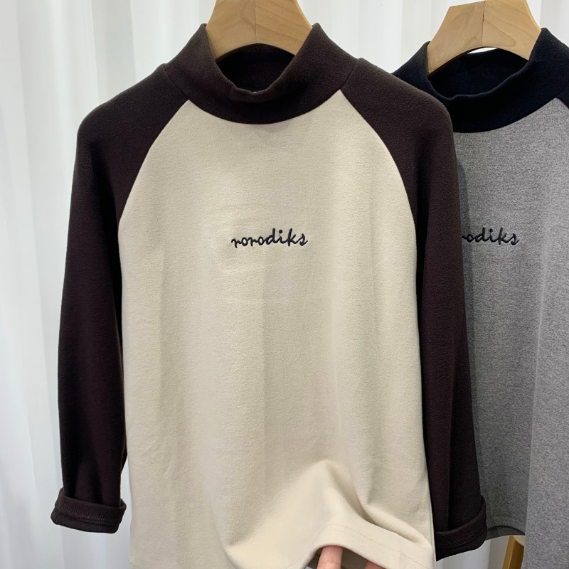 새로운 캐주얼 아동복 2025 봄과 가을 스타일 어린이 양털베이스 셔츠 올 매치 하프 하이 칼라 따뜻한 내부 티셔츠스토어 가기