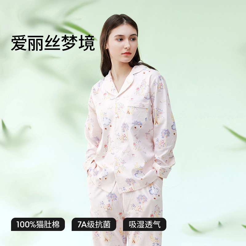 Beptides 성인 홈 의류 세트 여성 2025 년 새 봄과 가을 면 슈퍼 부드러운 고양이 배꼽 면 파자마스토어 가기