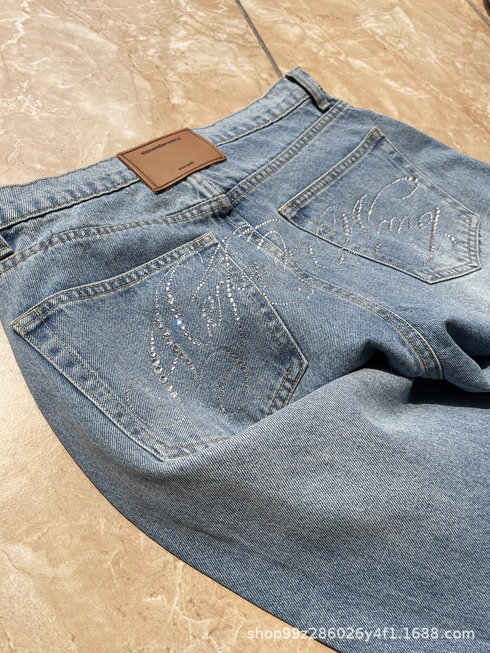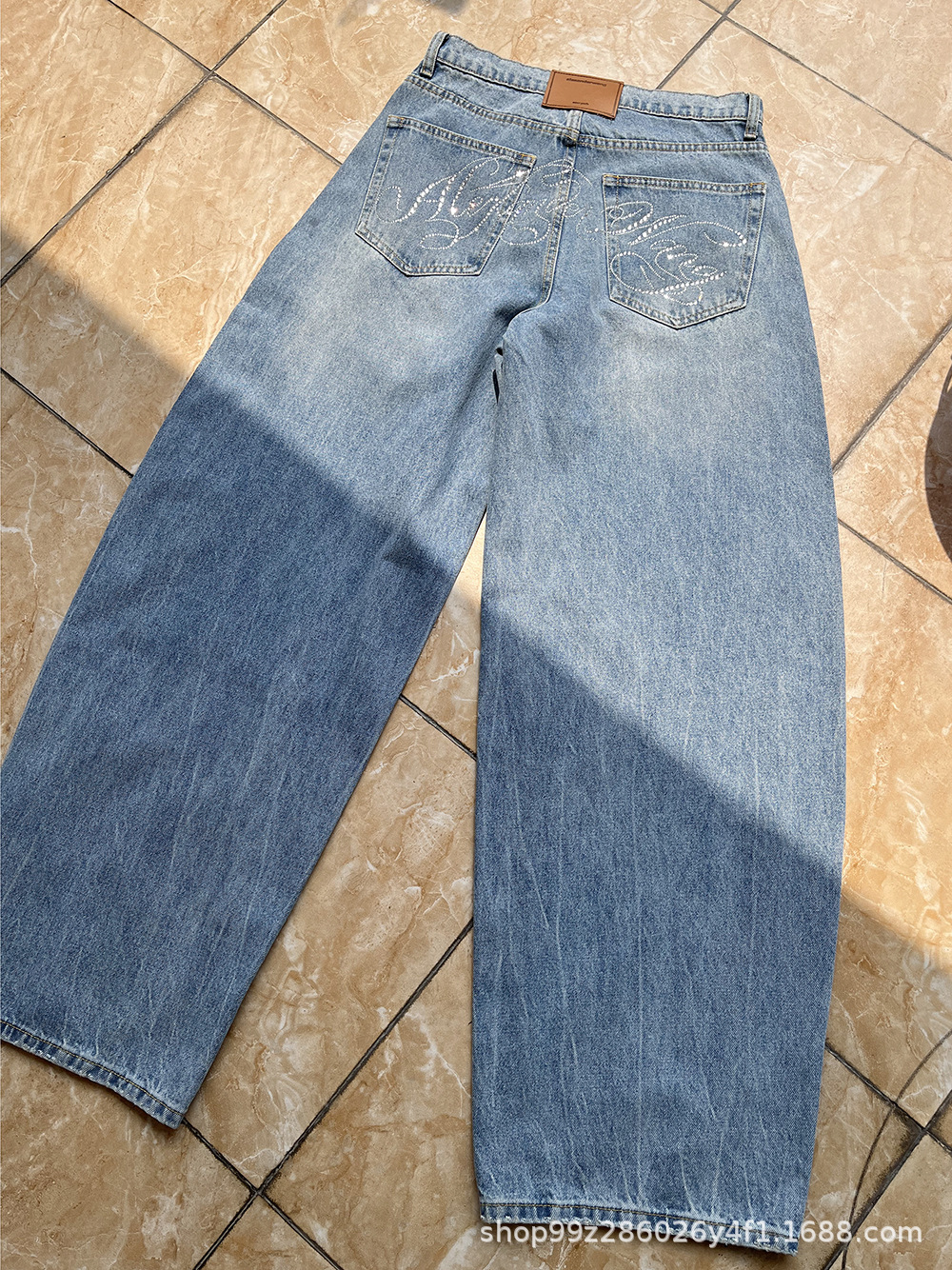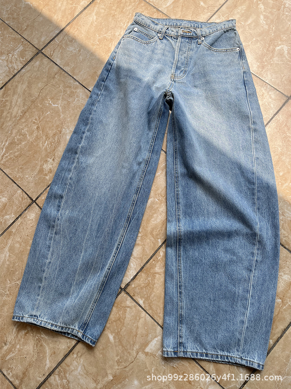 남쪽 석유 품질! 봄과 여름 2025 새로운 경련 중고 허리 와이드 레그 청바지 여성용 캐주얼 시미 터 바지스토어 가기