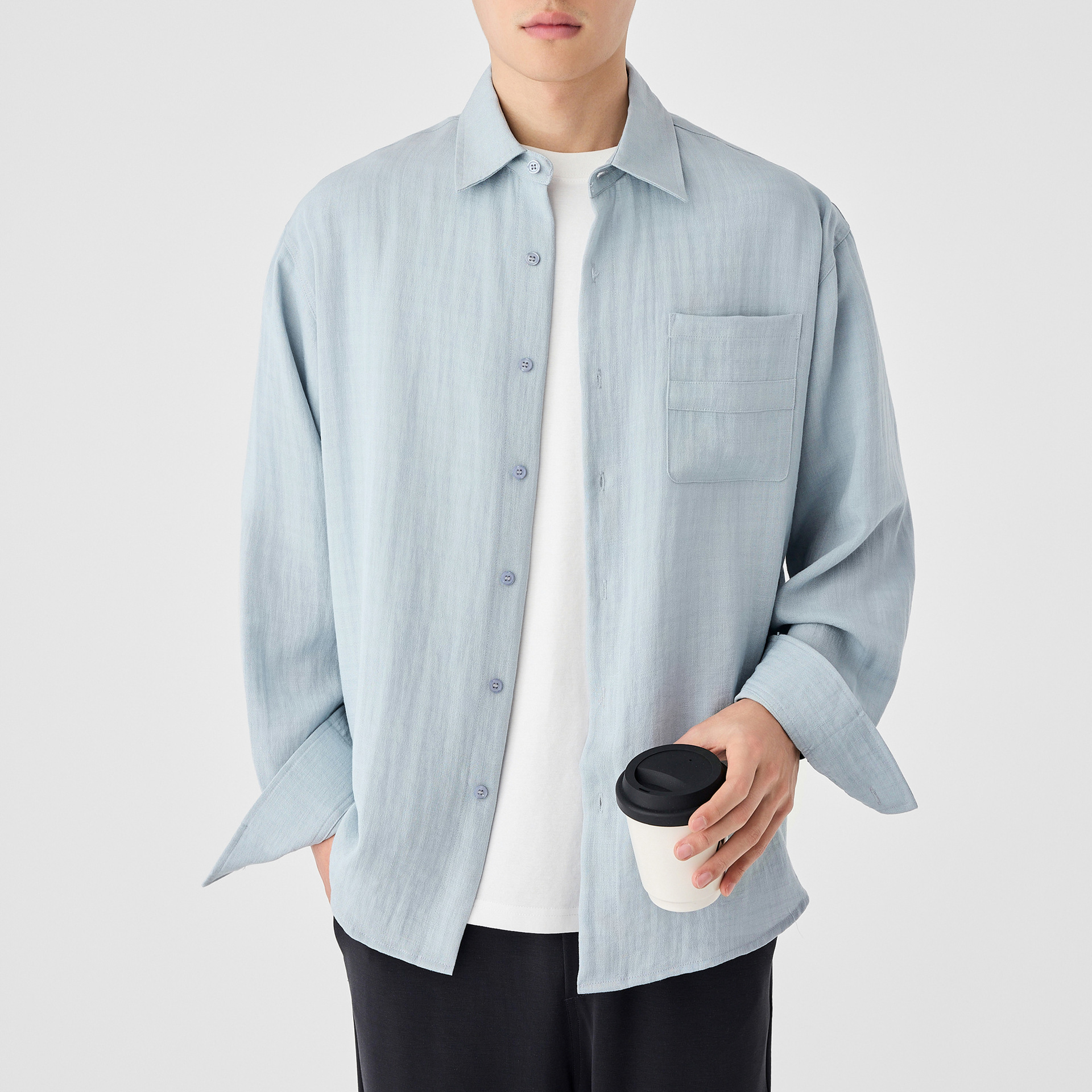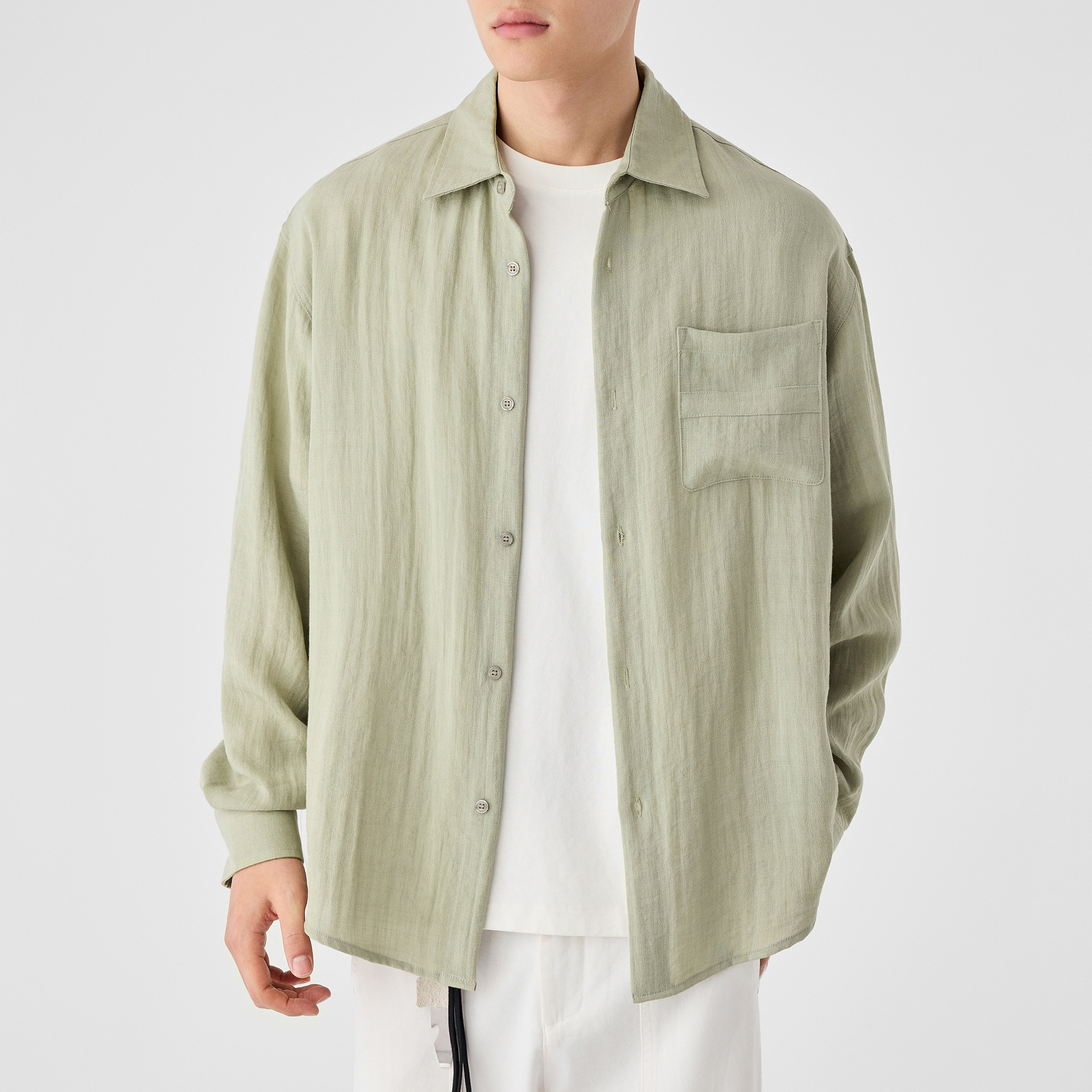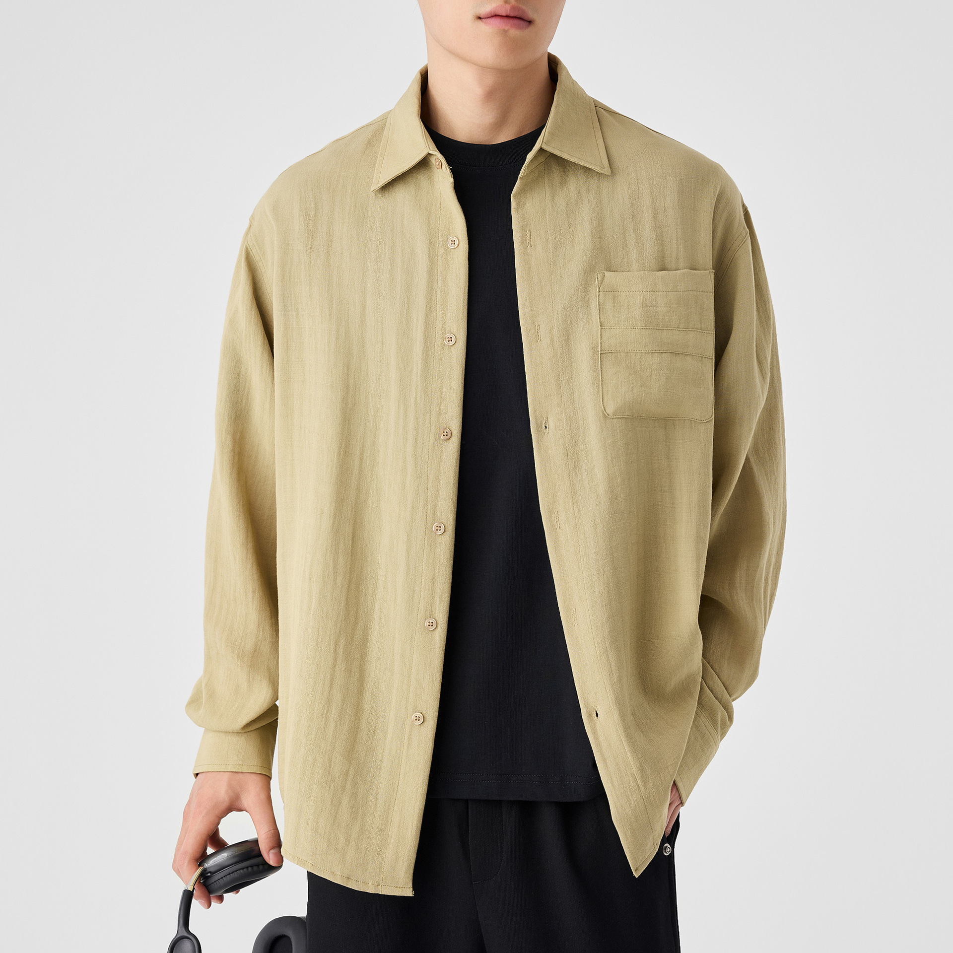 모마이크 남성용 린넨 느낌 주름 긴팔 셔츠 남성 2025 봄 신상 단색 출퇴근용 남성 셔츠 50315스토어 가기