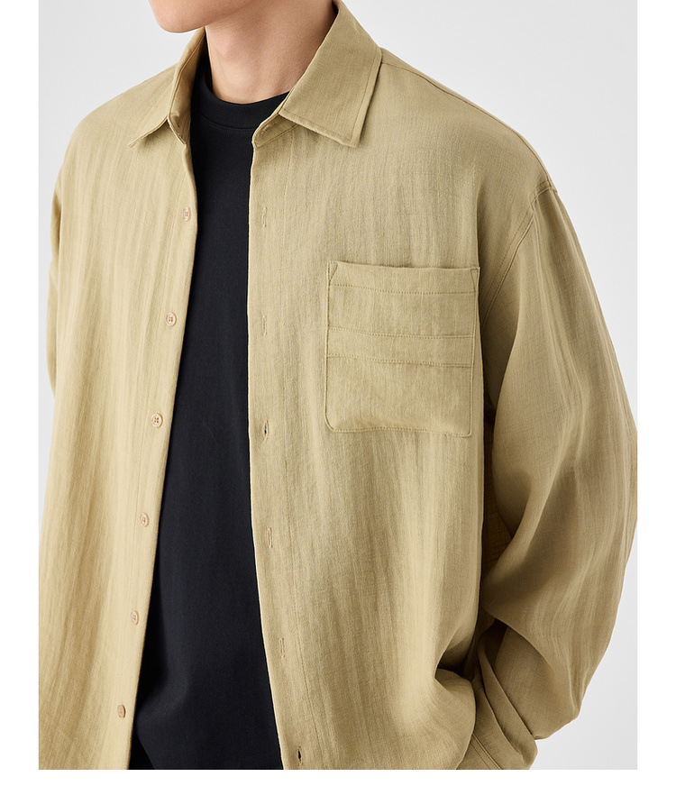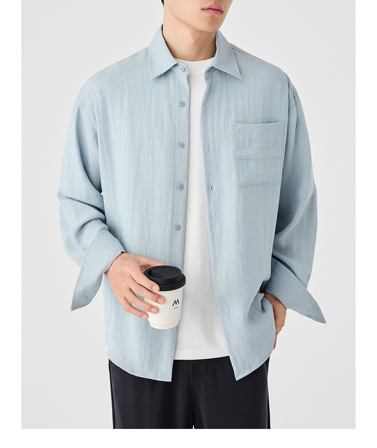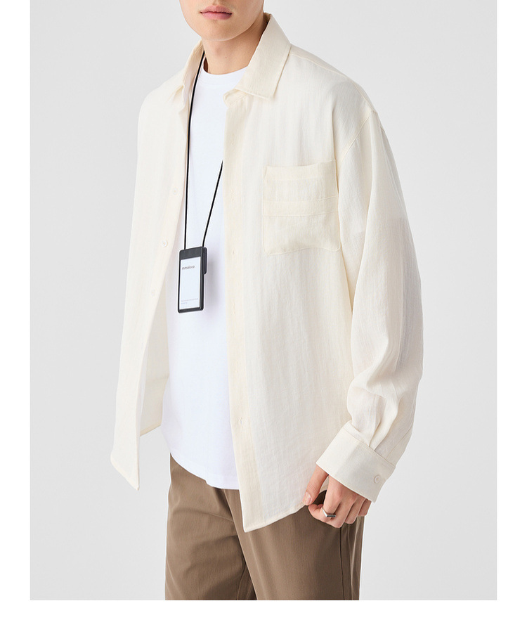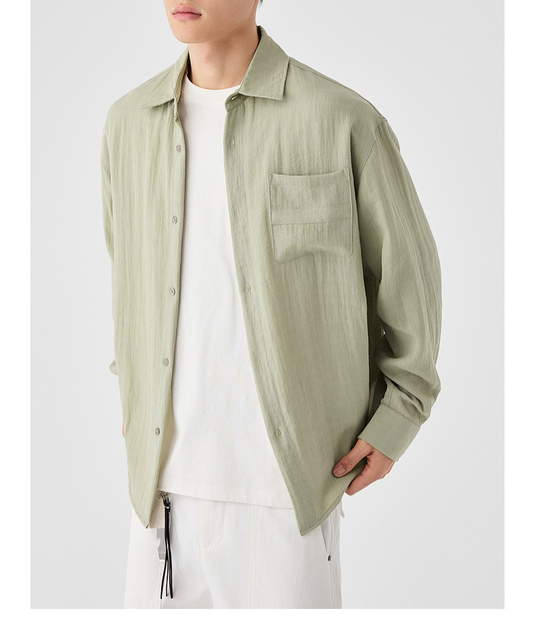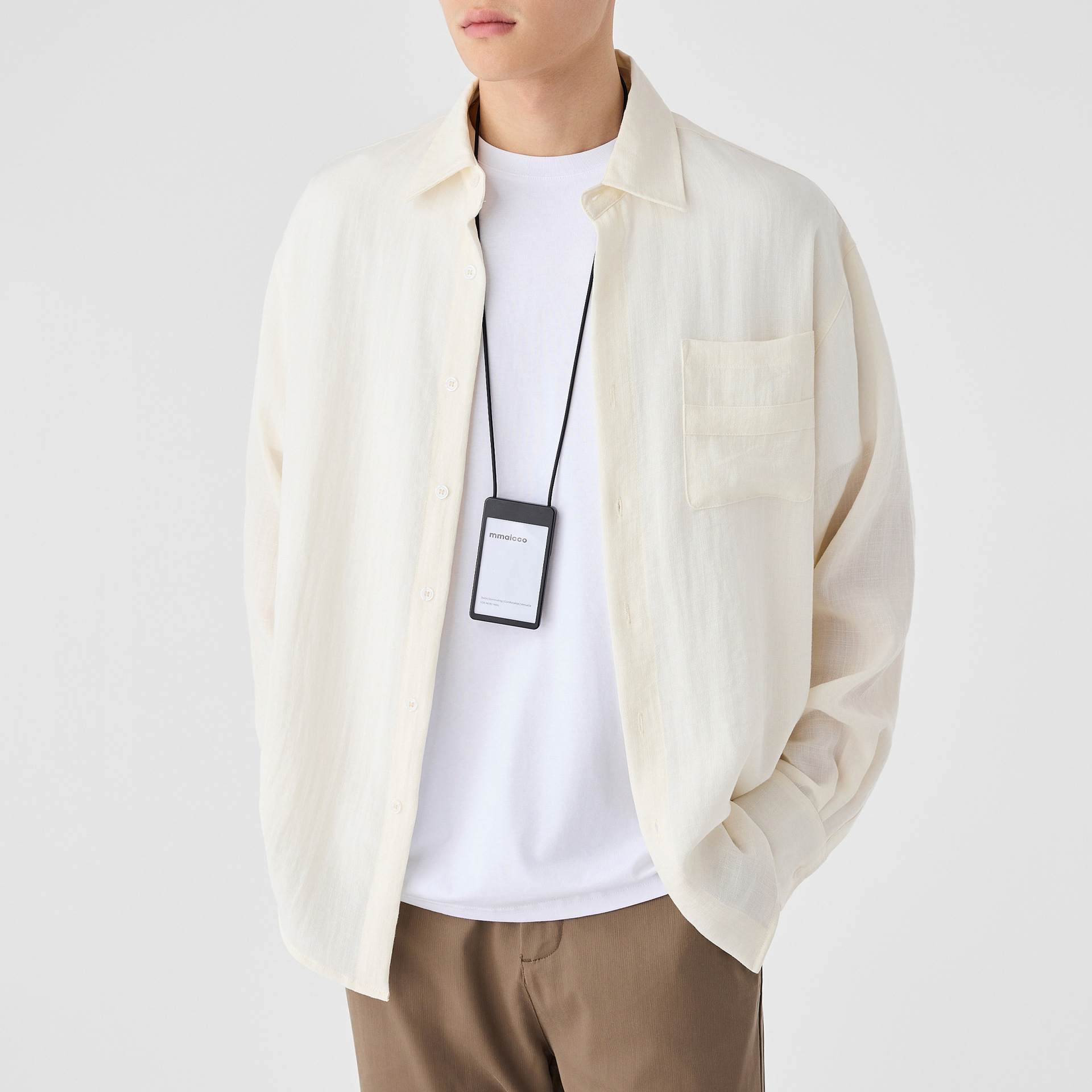 모마이크 남성용 린넨 느낌 주름 긴팔 셔츠 남성 2025 봄 신상 단색 출퇴근용 남성 셔츠 50315스토어 가기