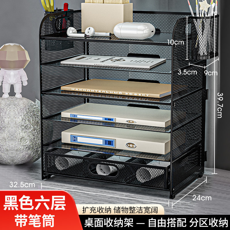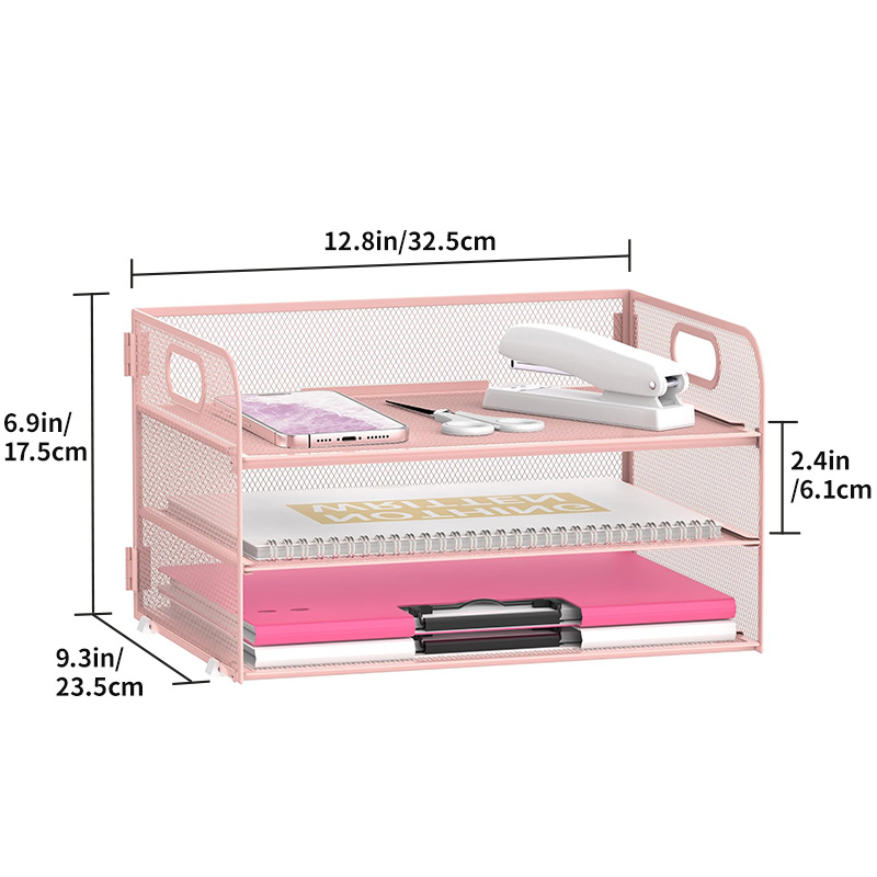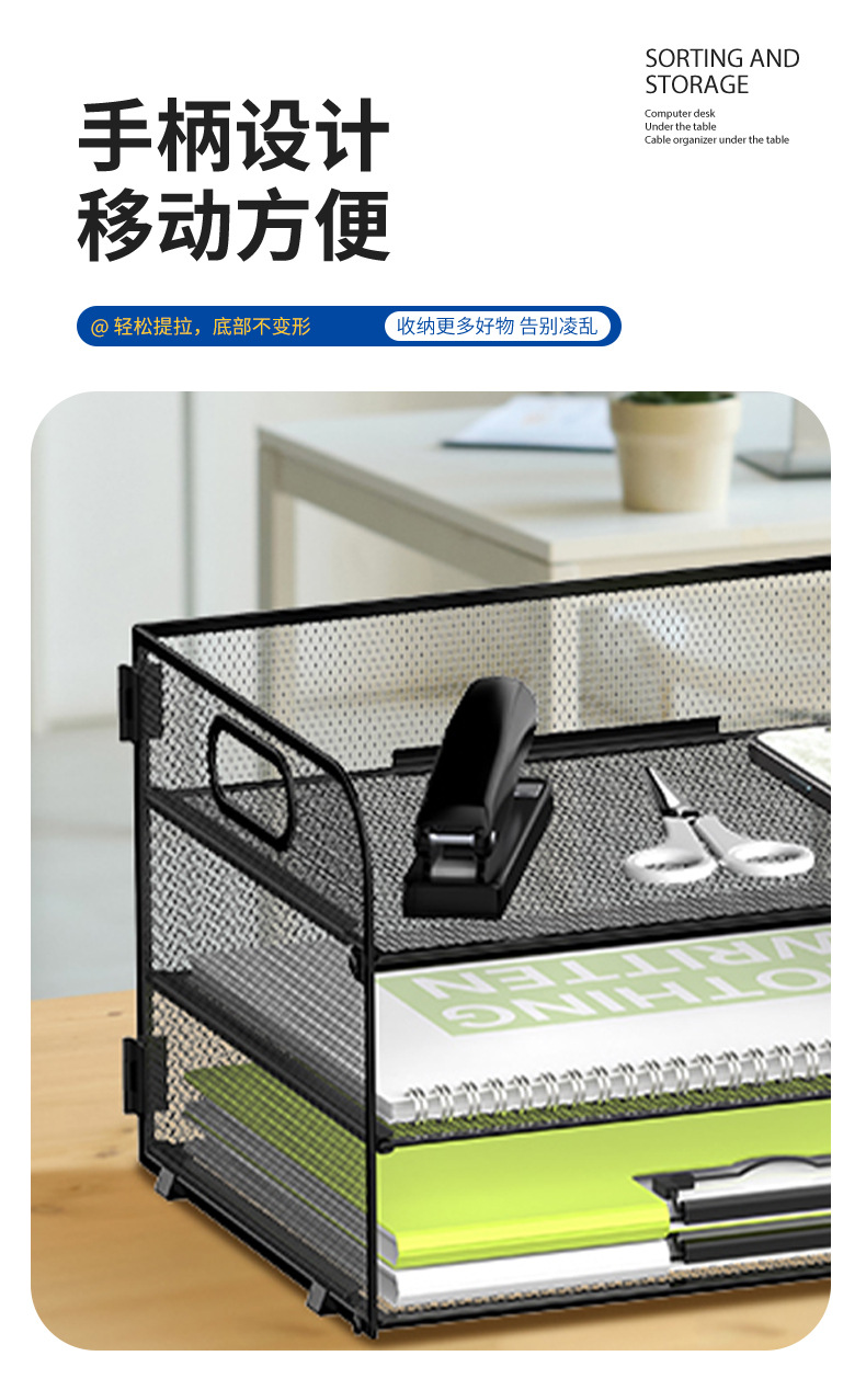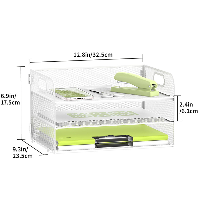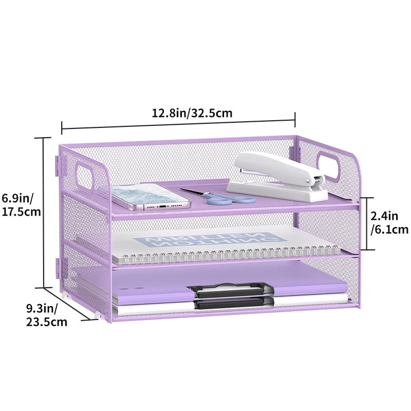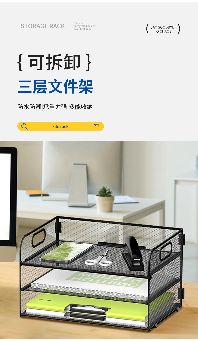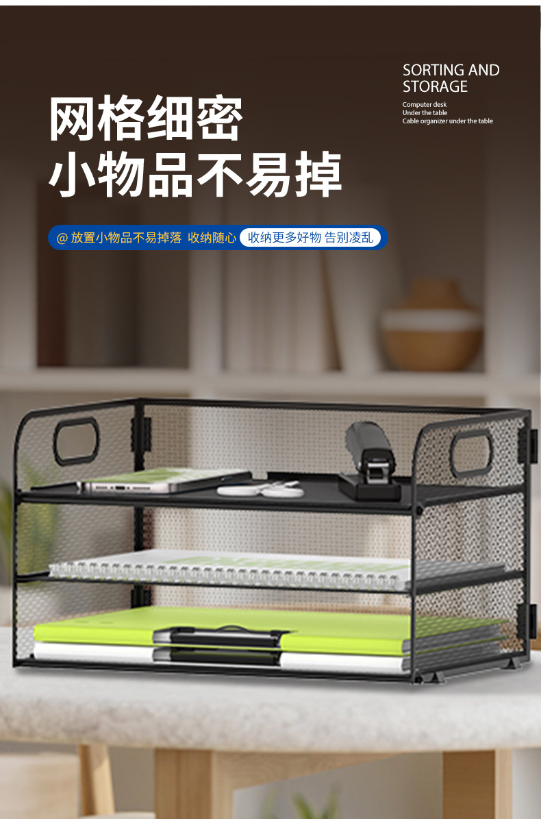 국경 3 층 문서 저장 랙 펀치가없는 탄소 강철 사무실 다기능 저장 바구니 단철 데스크탑 스토리지 랙