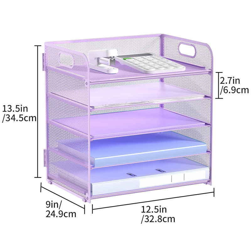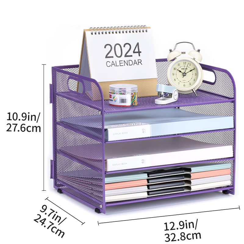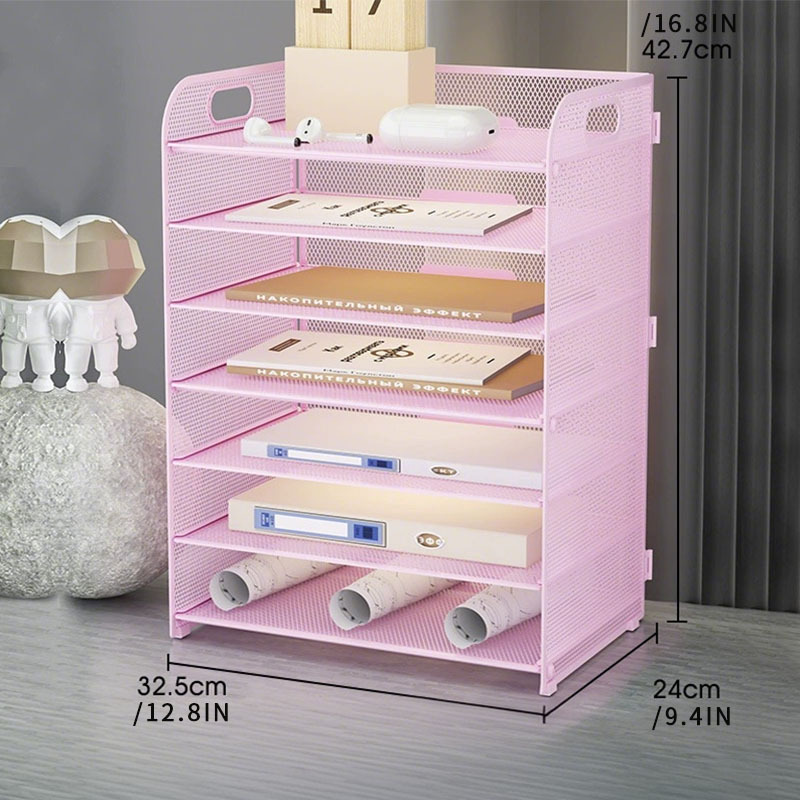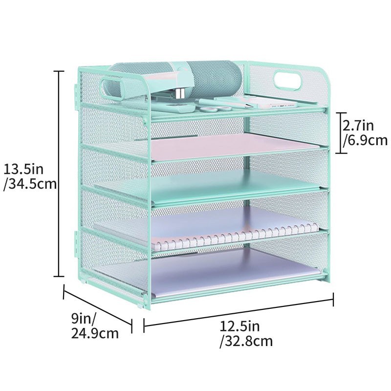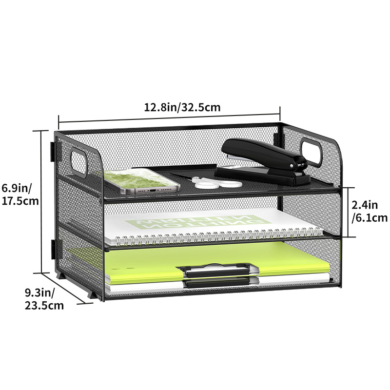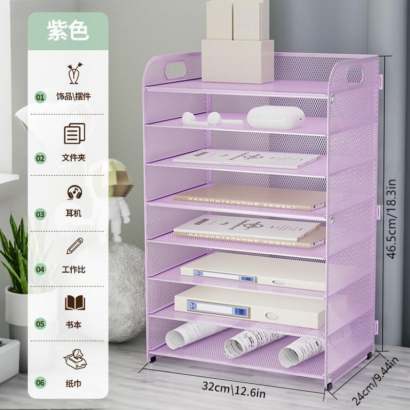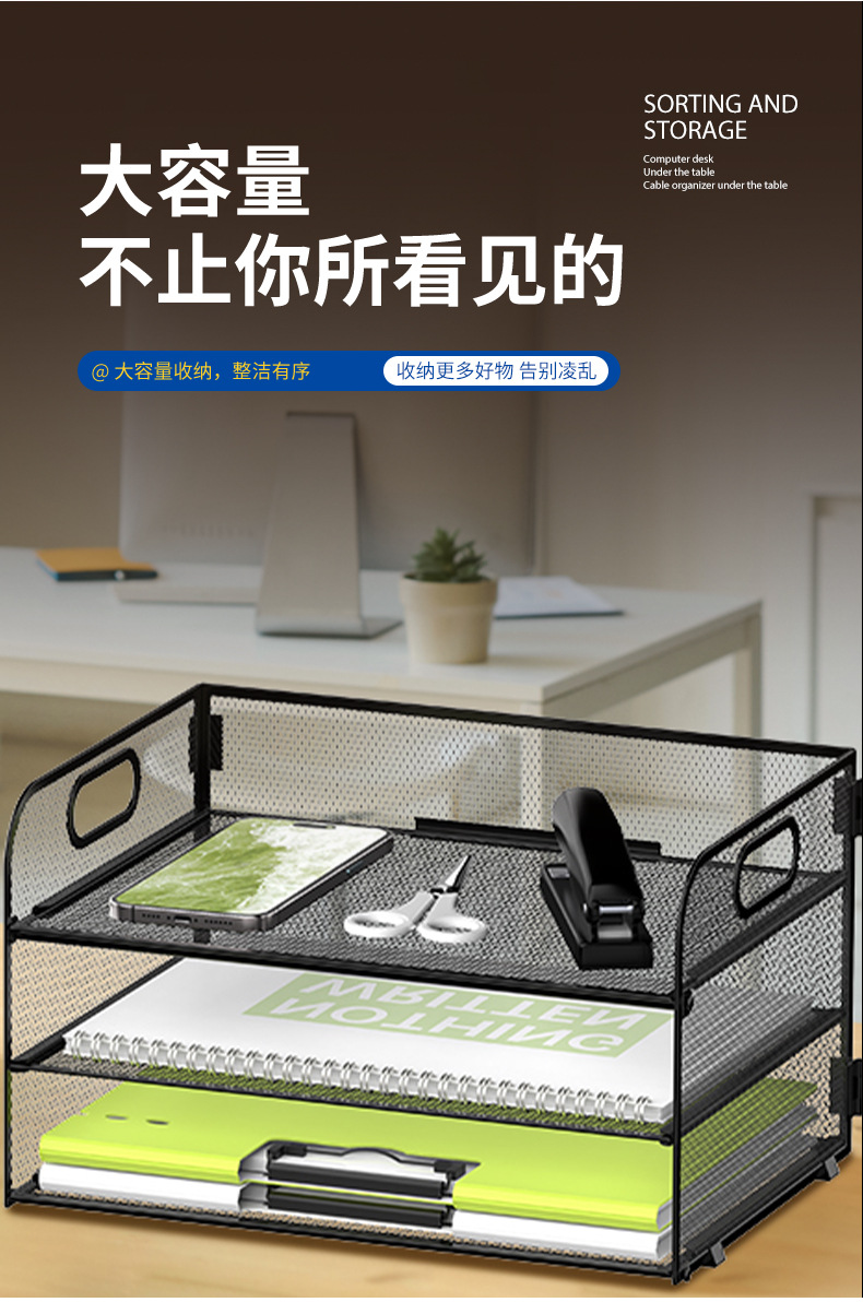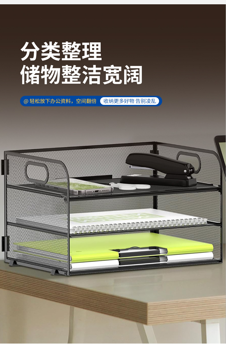 국경 3 층 문서 저장 랙 펀치가없는 탄소 강철 사무실 다기능 저장 바구니 단철 데스크탑 스토리지 랙