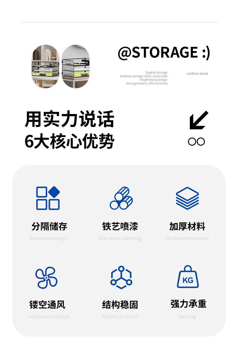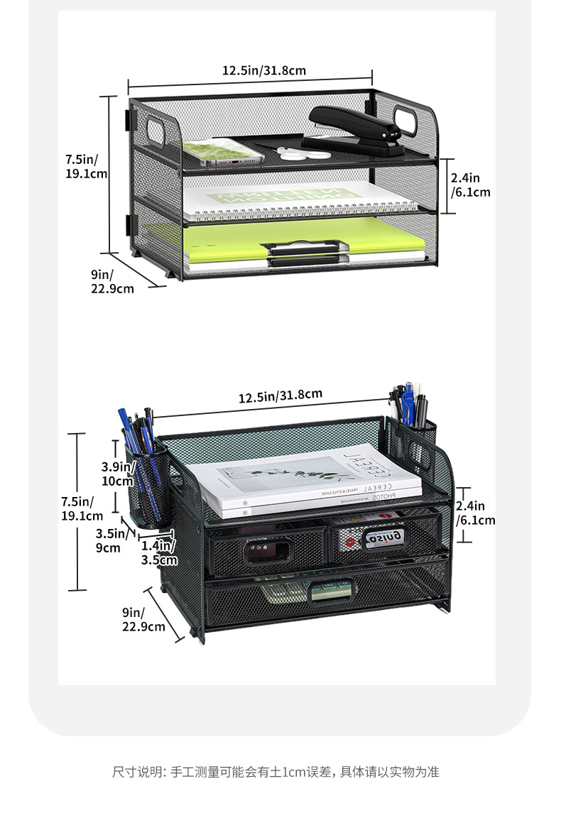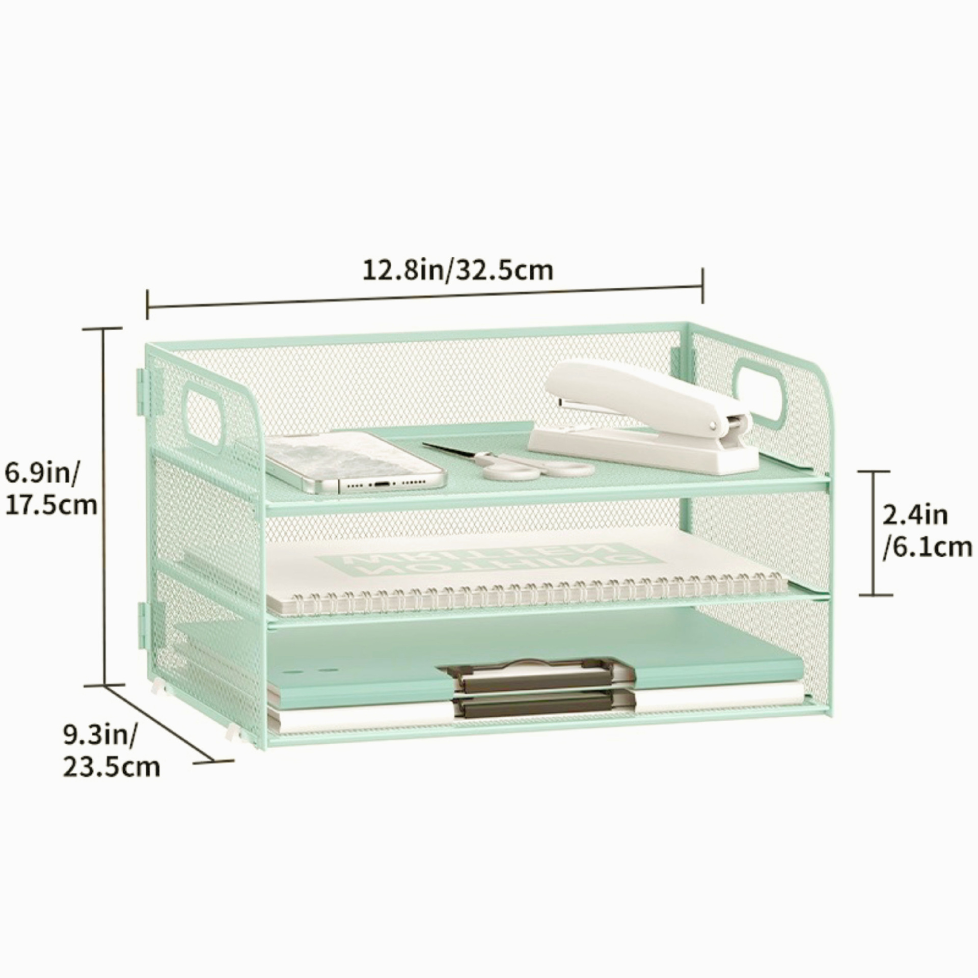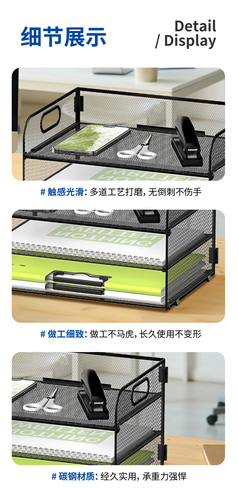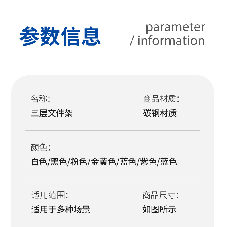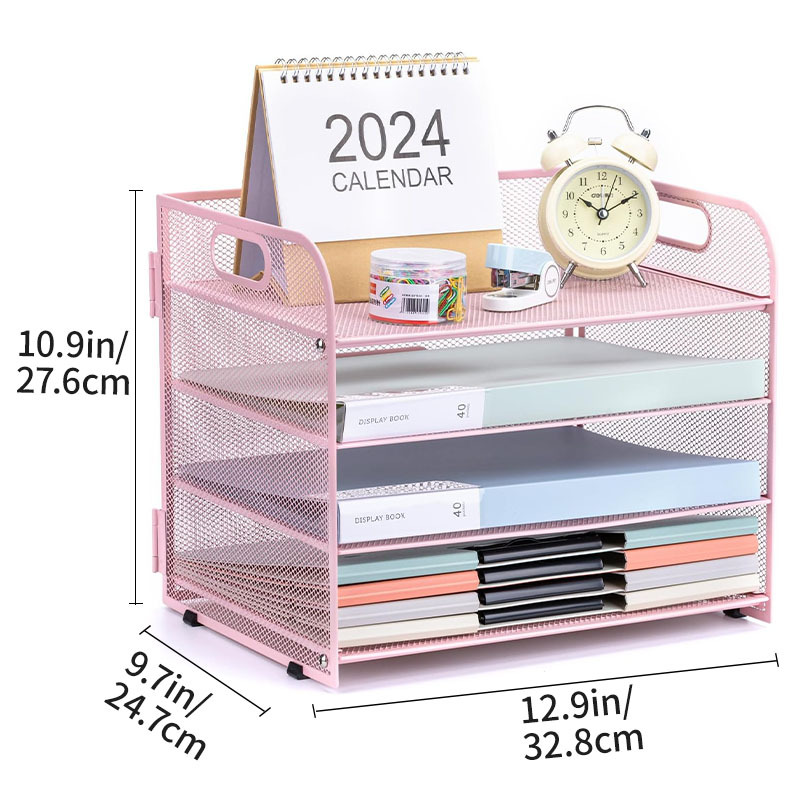 국경 3 층 문서 저장 랙 펀치가없는 탄소 강철 사무실 다기능 저장 바구니 단철 데스크탑 스토리지 랙