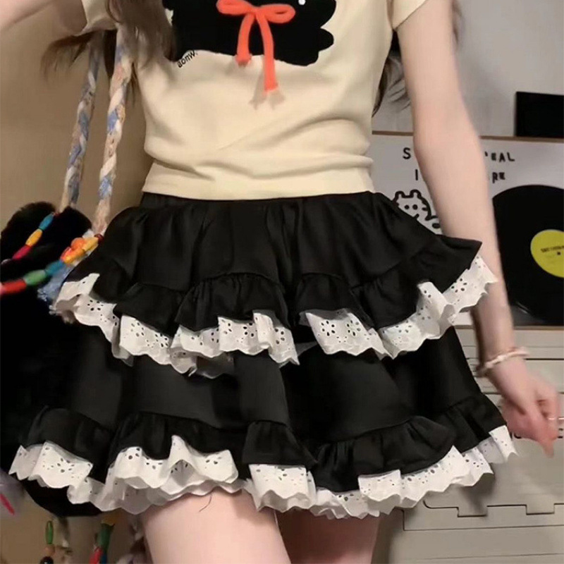 발레 스타일 블랙 푹신한 케이크 스커트 여성 여름 새로운 2 달콤한 스파이스 소녀 디자인 높은 허리 짧은 치마스토어 가기