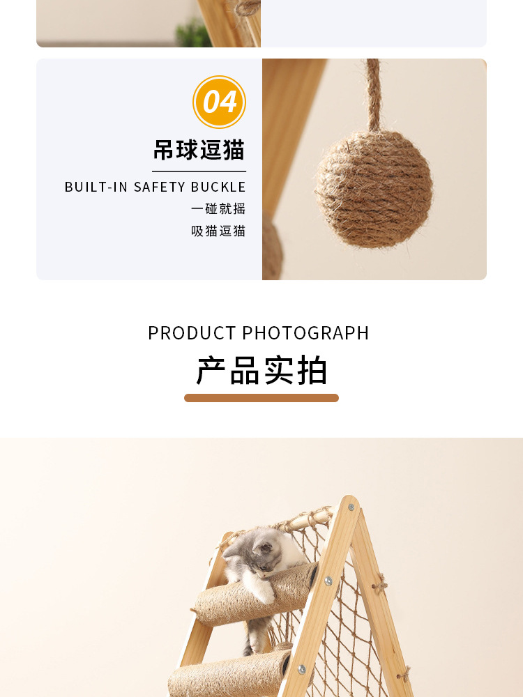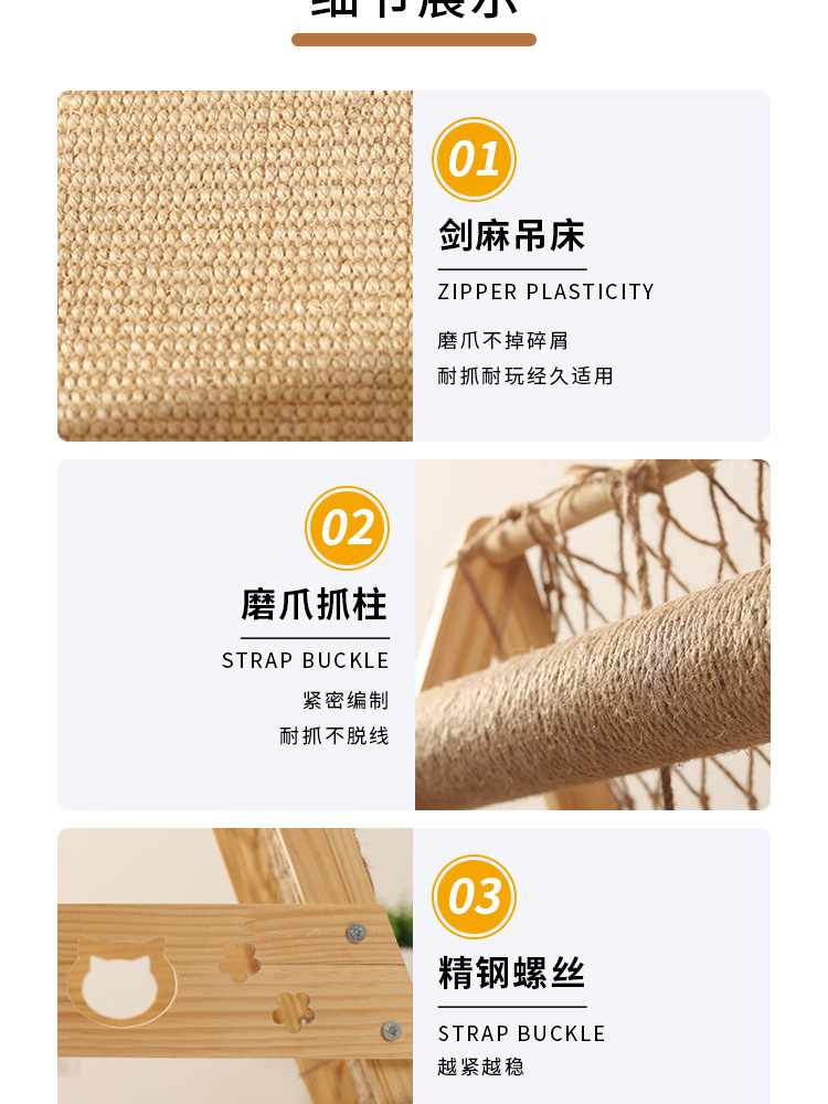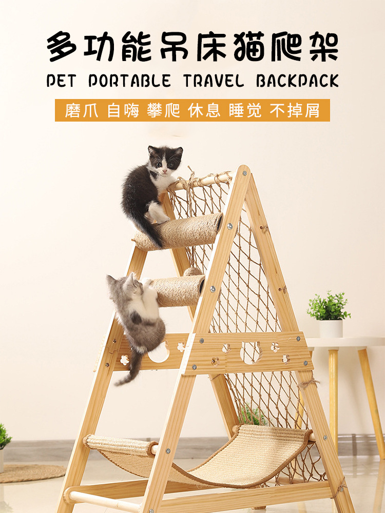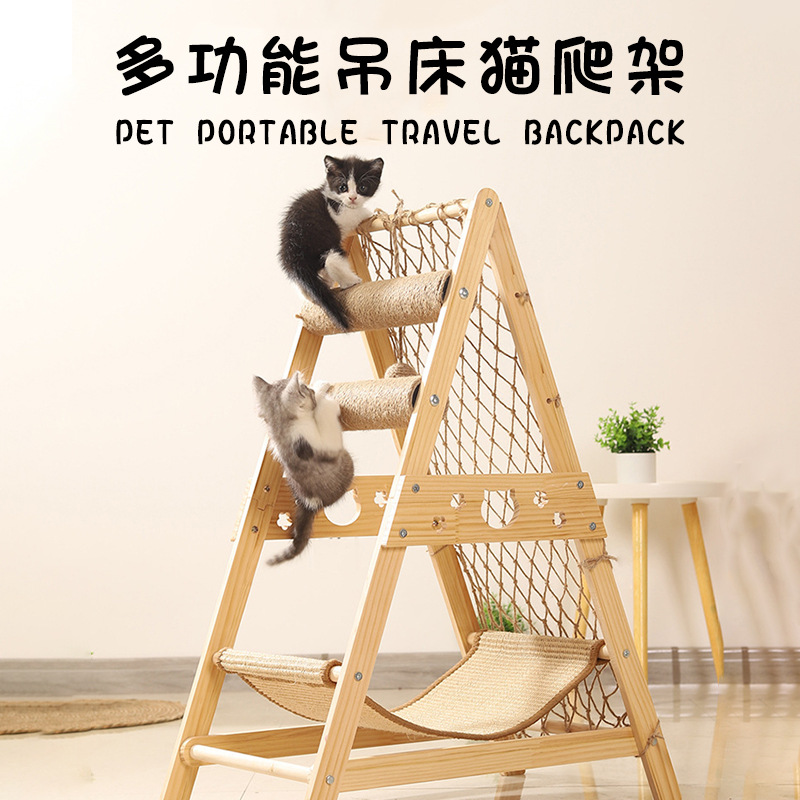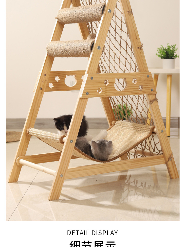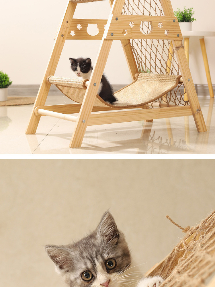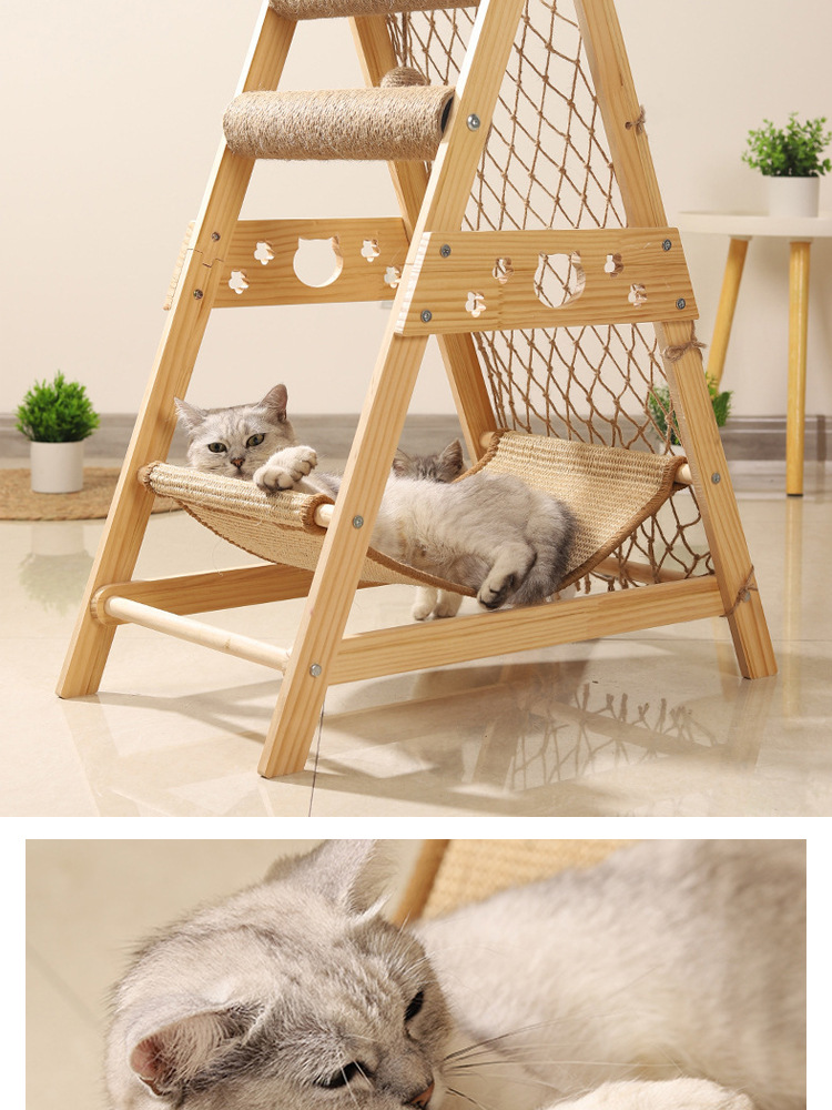 새로운 고양이 등반 프레임 단단한 나무 고양이 스크래치 보드 둥지 통합 단단한 나무 내마모성 부스러기 해먹 애완 동물 용품 공장 직접 공급스토어 가기