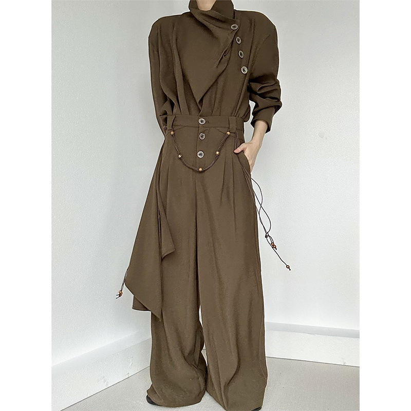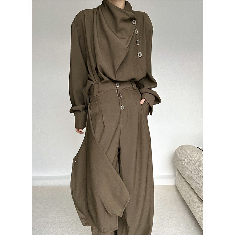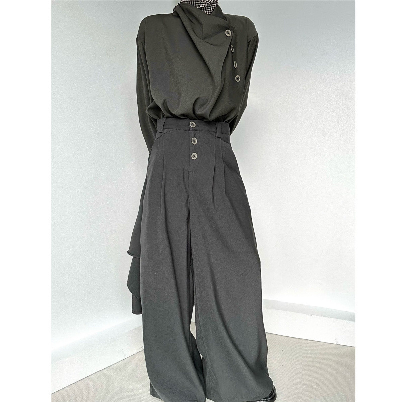 그레이 불규칙한 탑 와이드 레그 컬로 테스 여자 2025 봄 새로운 한국 스타일 유행 올 매치 캐주얼 세트스토어 가기