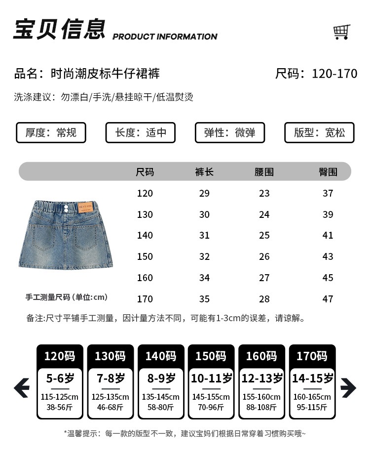 소녀 데님 Culottes 여름 2025 새로운 한국 스타일 유행 가죽 라벨 데님 흉상 바지 스커트 큰 어린이 문화스토어 가기