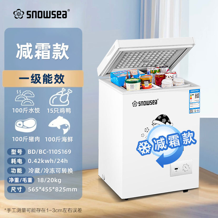 SNOWSEA 냉동고 가정용 대용량 냉동 및 냉동 이중 목적 소형 냉동고 미니 지방 냉장고 차스토어 가기