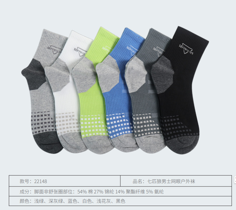 일곱 늑대 남자 양말 22148 남자 미드 튜브 메쉬 스포츠 양말 높은 탄성 사계절 코튼 양말 통기성 야외 양말
