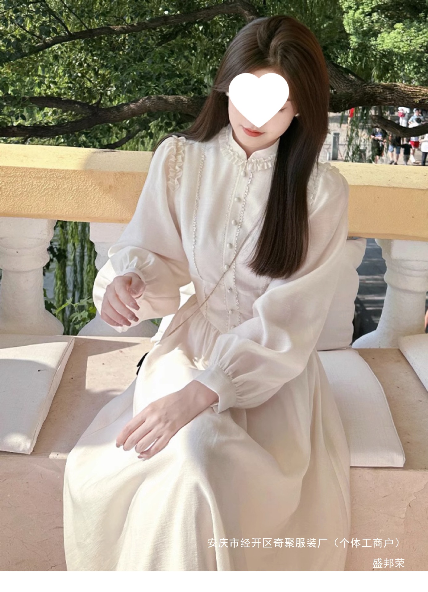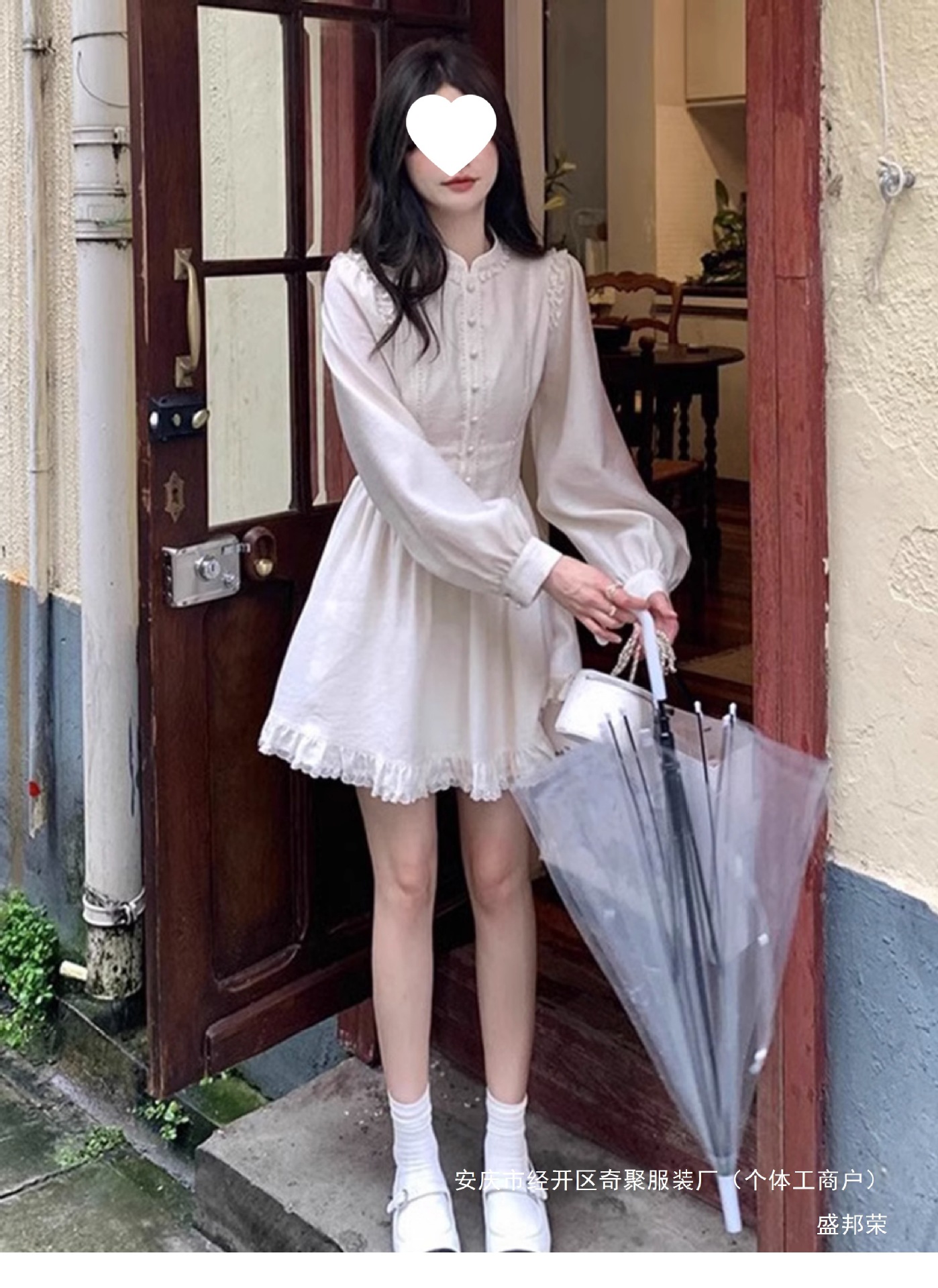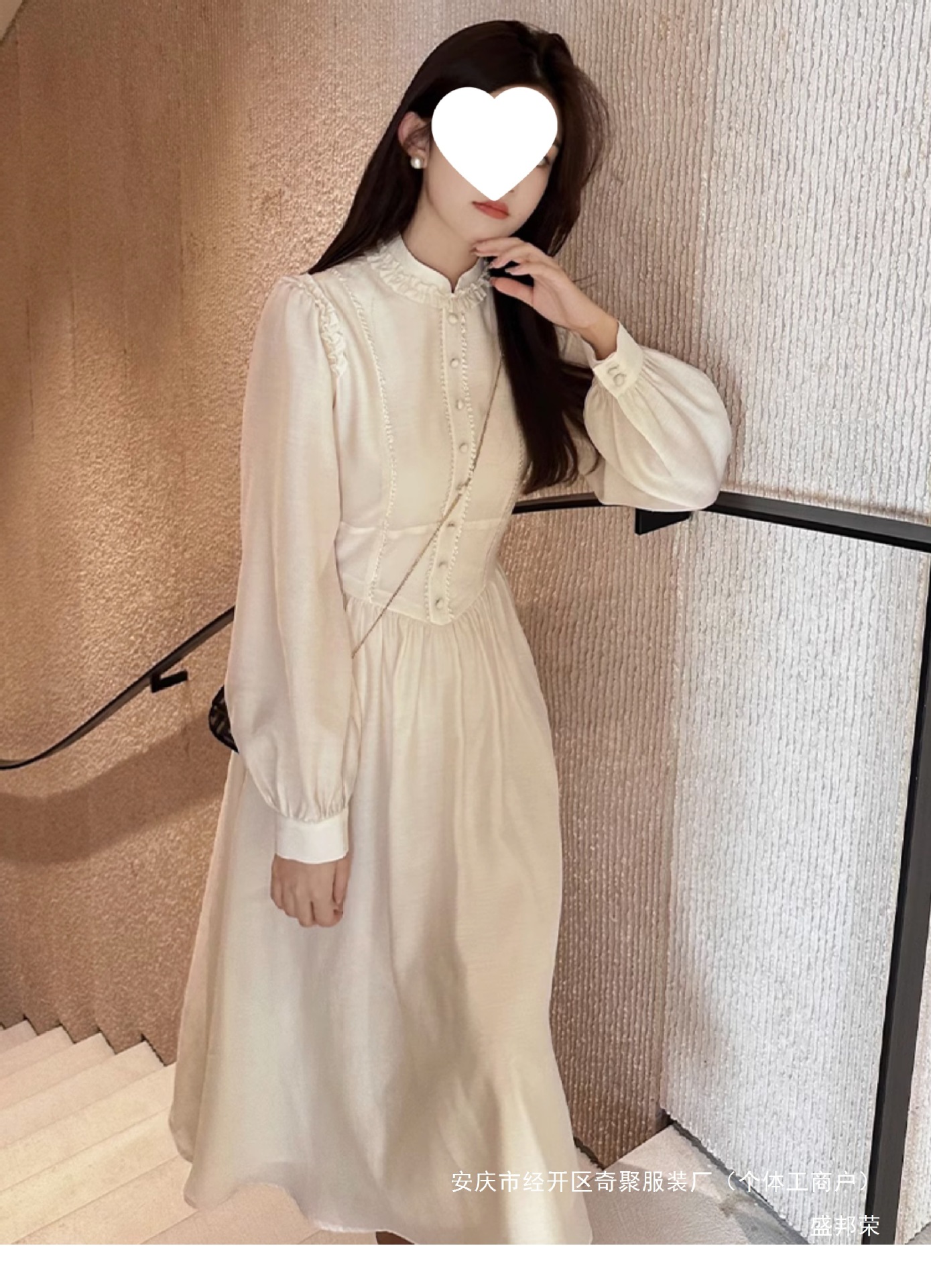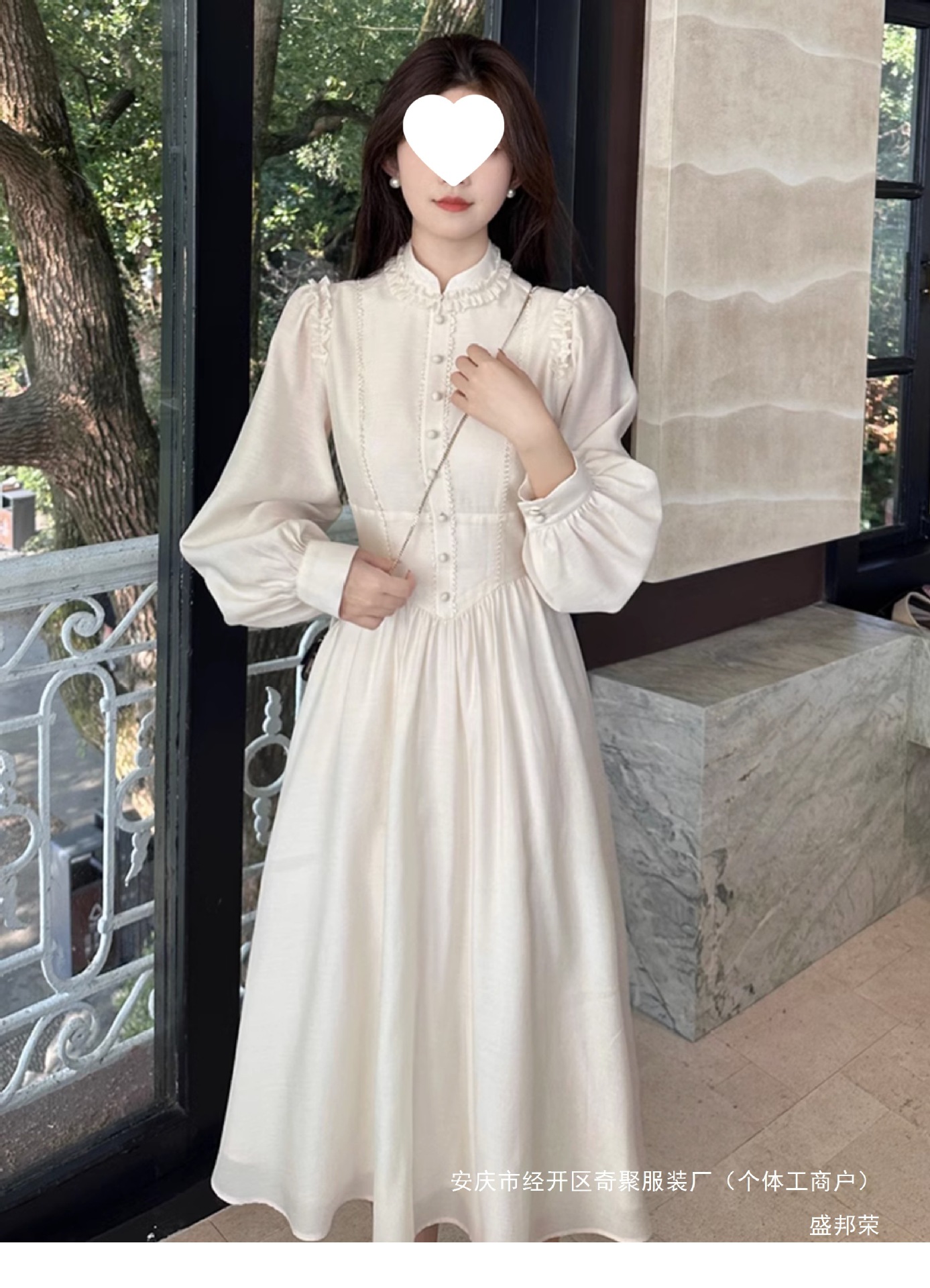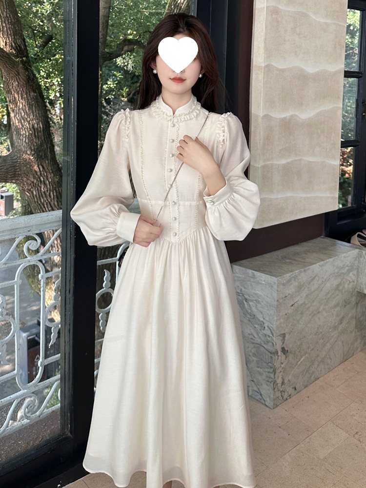 프랑스 고급 궁전 스타일 긴 소매 원피스 2025 봄 새로운 여성 퍼프 소매 크림 살구색 긴 치마스토어 가기