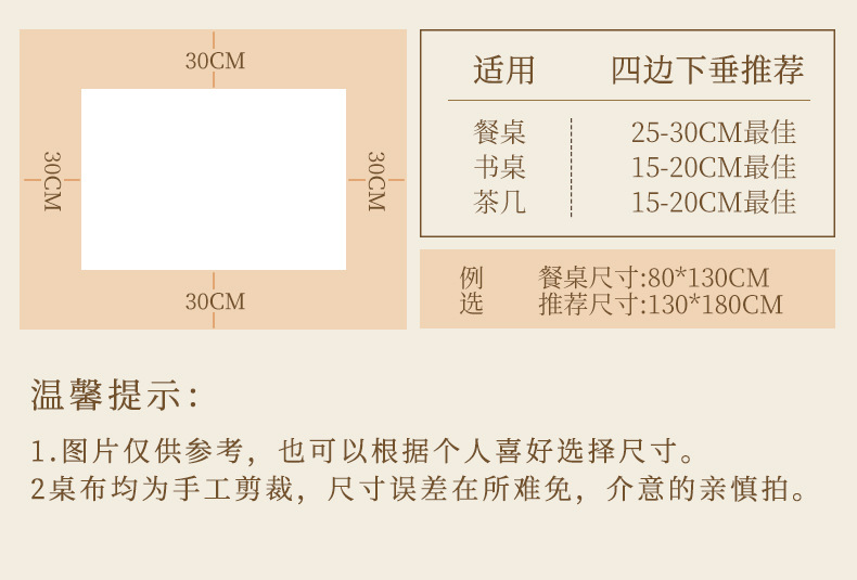 • 140*140cm [100*100 정사각형 테이블/원형 테이블에 적용 가능]