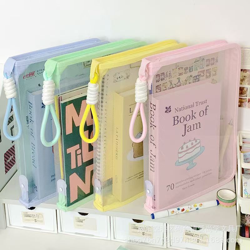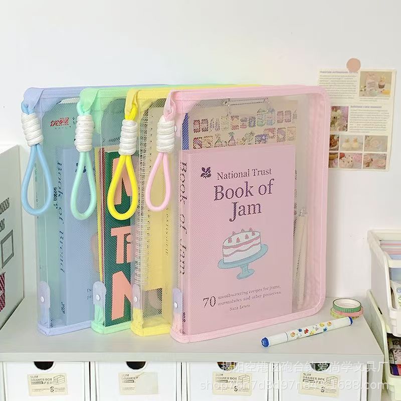 Ins 새로운 대학생 파일 가방 핸드백 대용량 A4 지퍼 투명 테스트 용지 교과서 테스트 용지 폴더