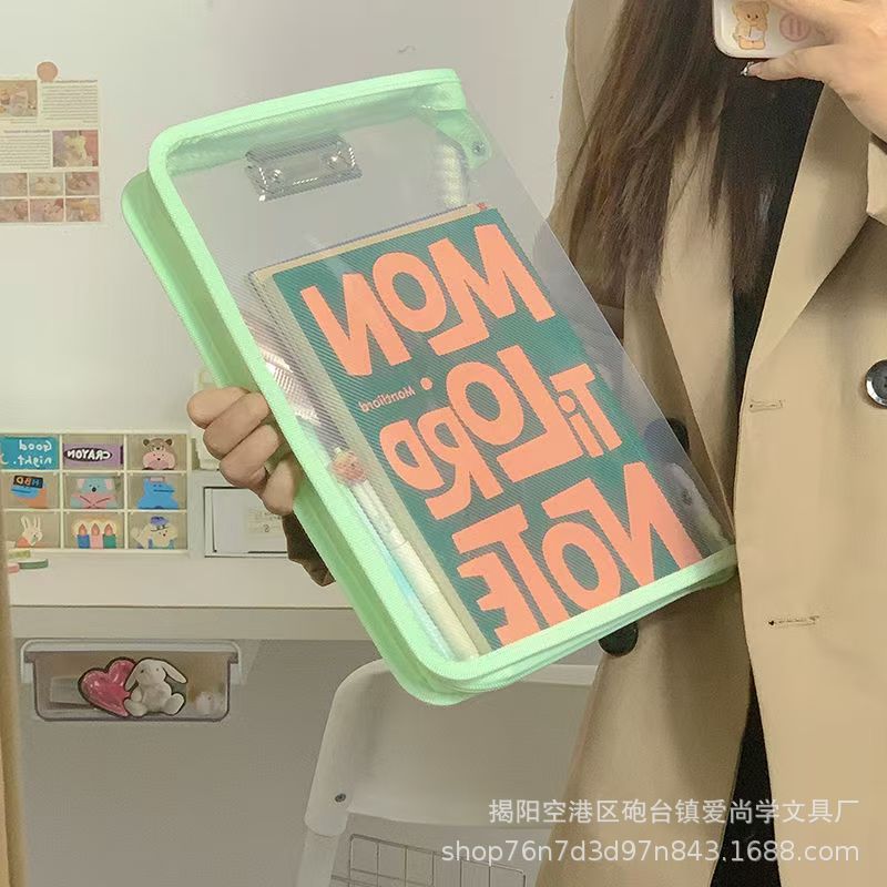Ins 새로운 대학생 파일 가방 핸드백 대용량 A4 지퍼 투명 테스트 용지 교과서 테스트 용지 폴더스토어 가기