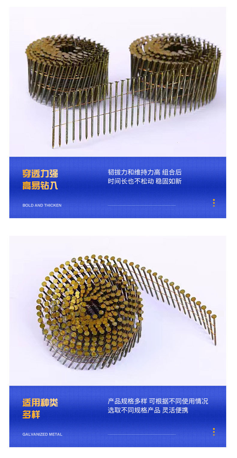롤링 네일건 전용 공압 나사형 롤링 네일 목공 장식용 철못 고강도 롤링 네일 다양한 모델