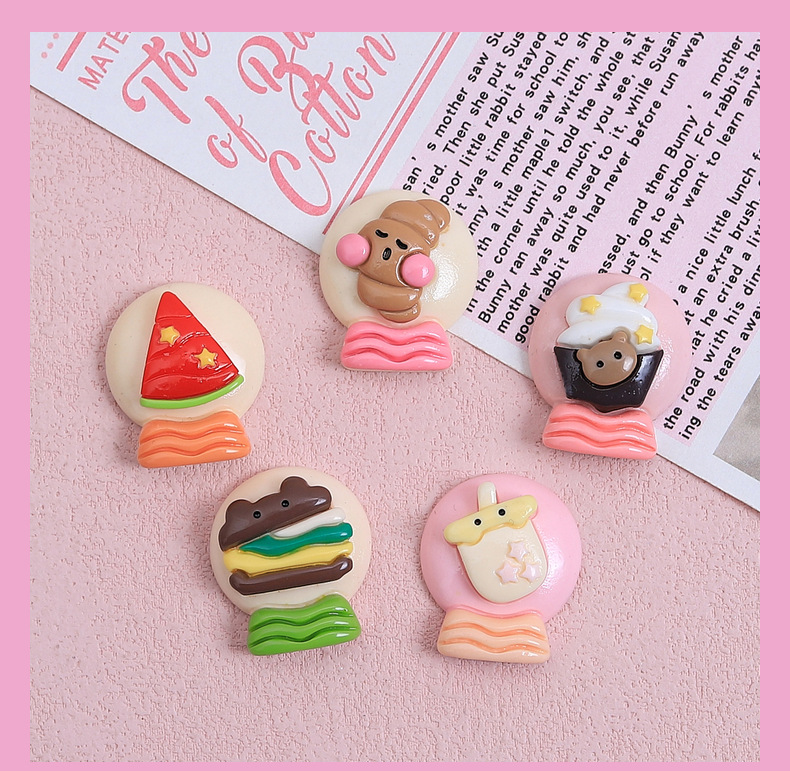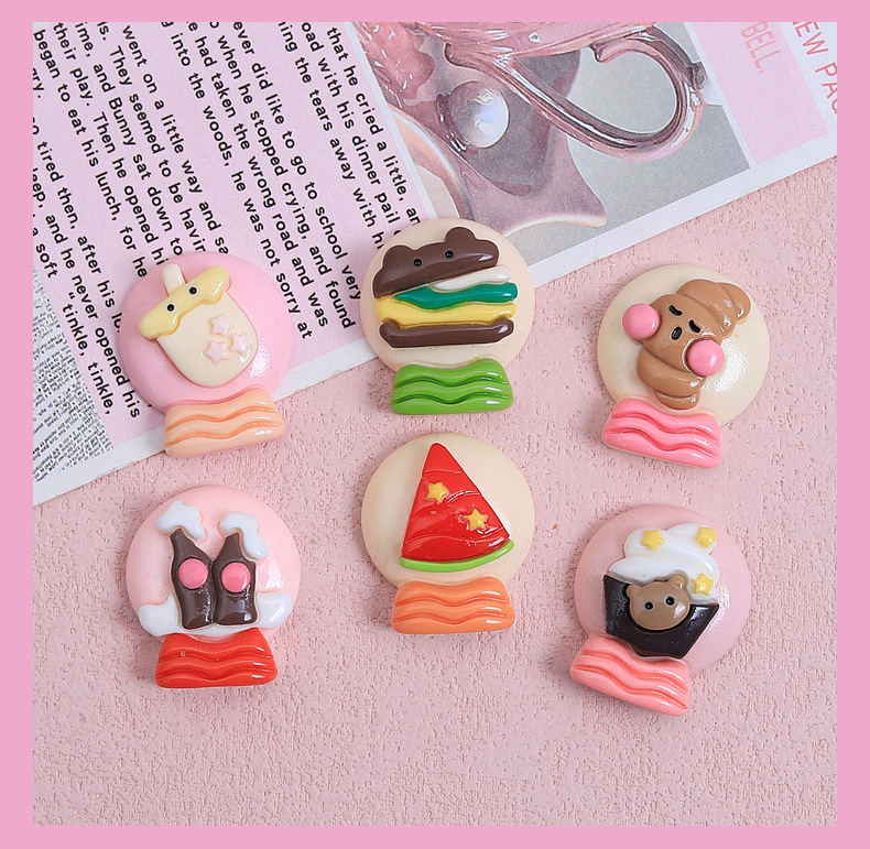 음료 크리스탈 볼 음식 놀이 만화 수제 크림 접착제 diy 헤어 클립 냉장고 소재 수지 액세서리 도매