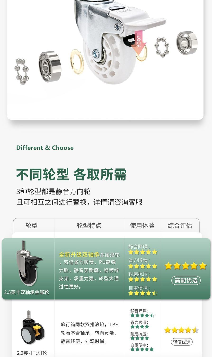 • 2.5 금속 범용 휠 - 브레이크 포함