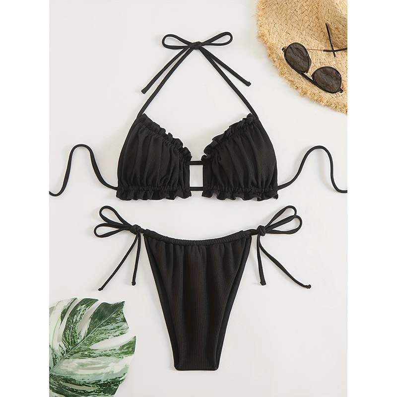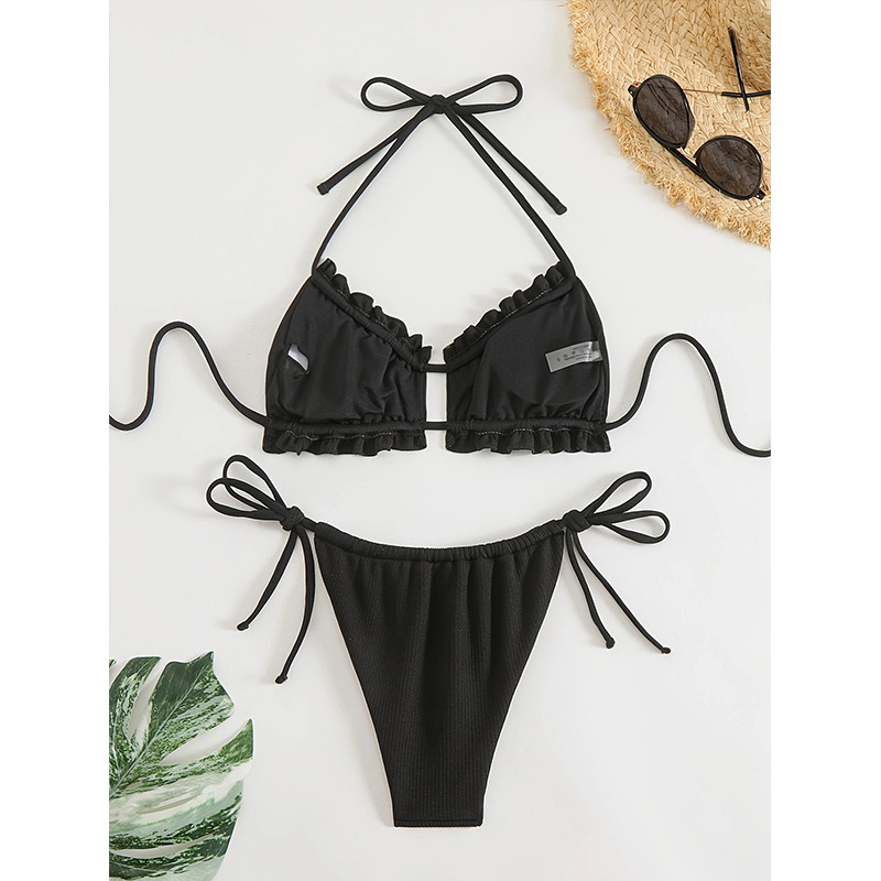 2025 새로운 유럽과 미국의 섹시한 수영복 여성의 분할 삼각형 가방 테더 수영복 높은 탄성 단색 튜브 탑 비키니스토어 가기