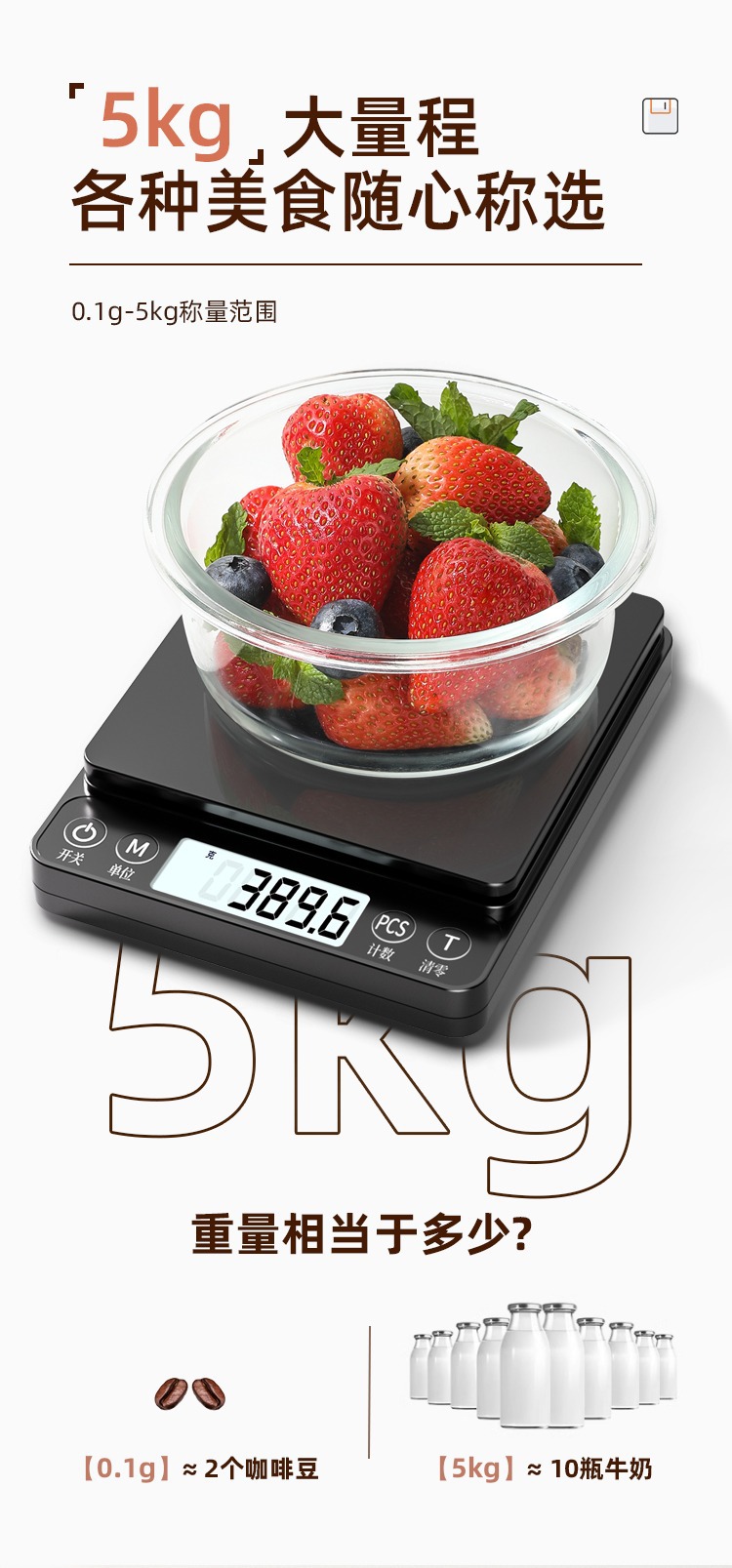 • "0.1g-5kg ""블랙"" 충전식 모델 [백라이트 포함 및 5가지 선물]"