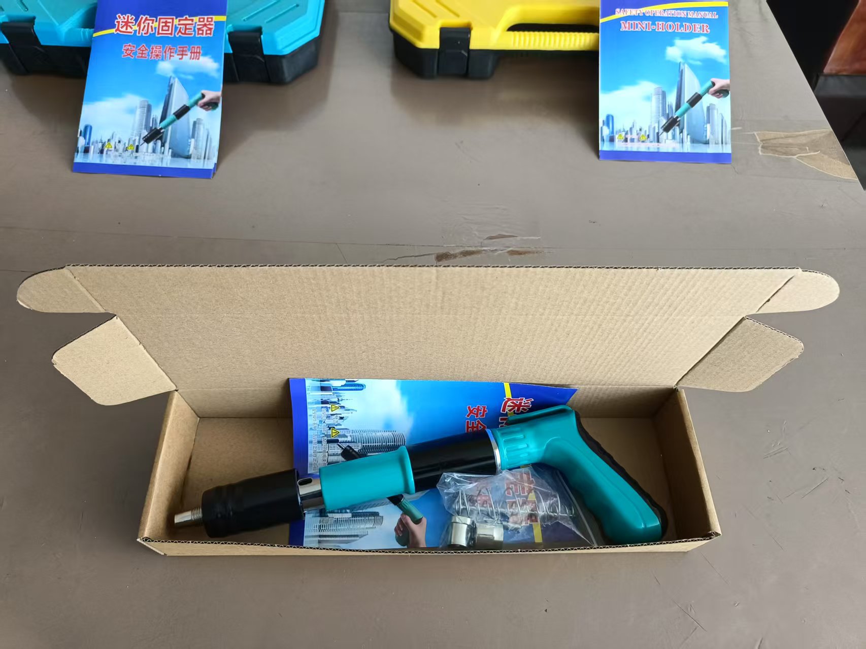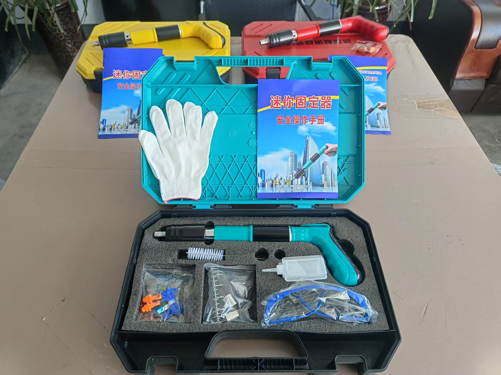 • 파란색 단일 총 + 액세서리 가방 + 못 100개
