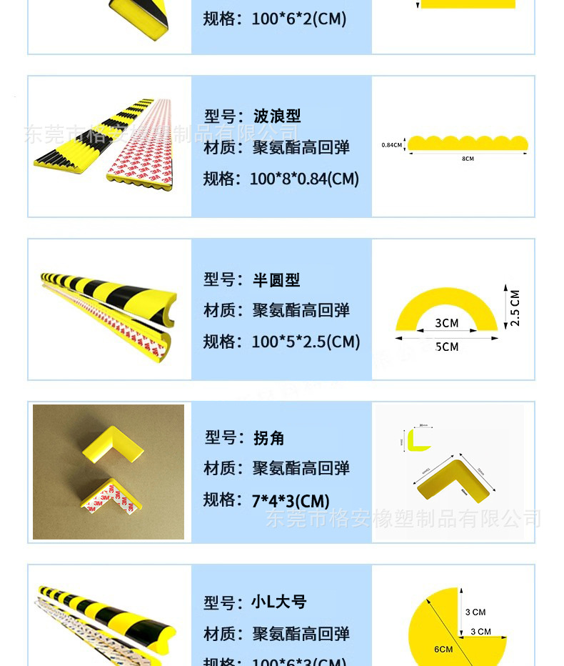 스팟 PU 폴리우레탄 충돌 방지 스트립, 코너 소프트 엣지 보호 스트립, 충격 방지 산업용 검정색 및 노란색 경고 고무 자체 접착스토어 가기