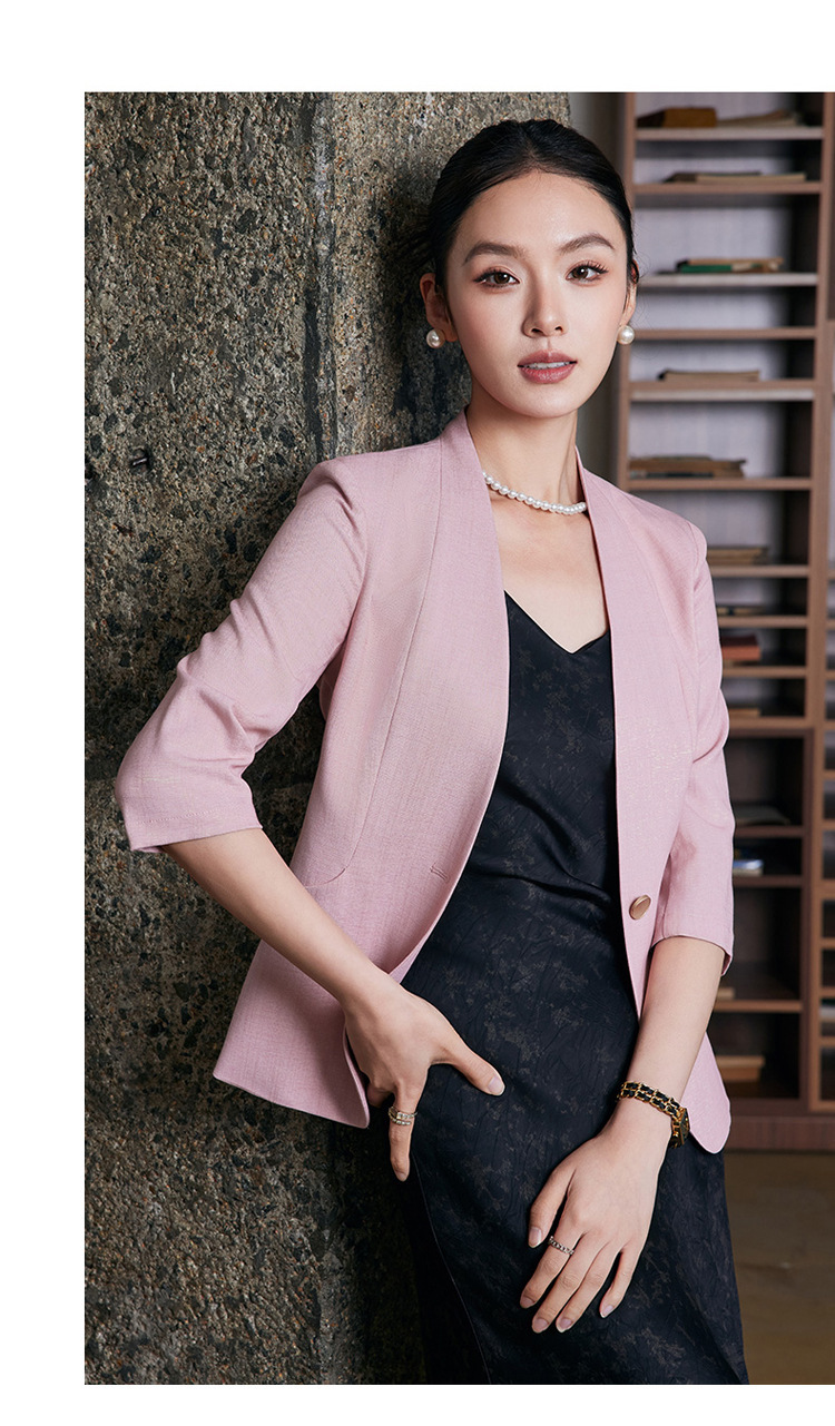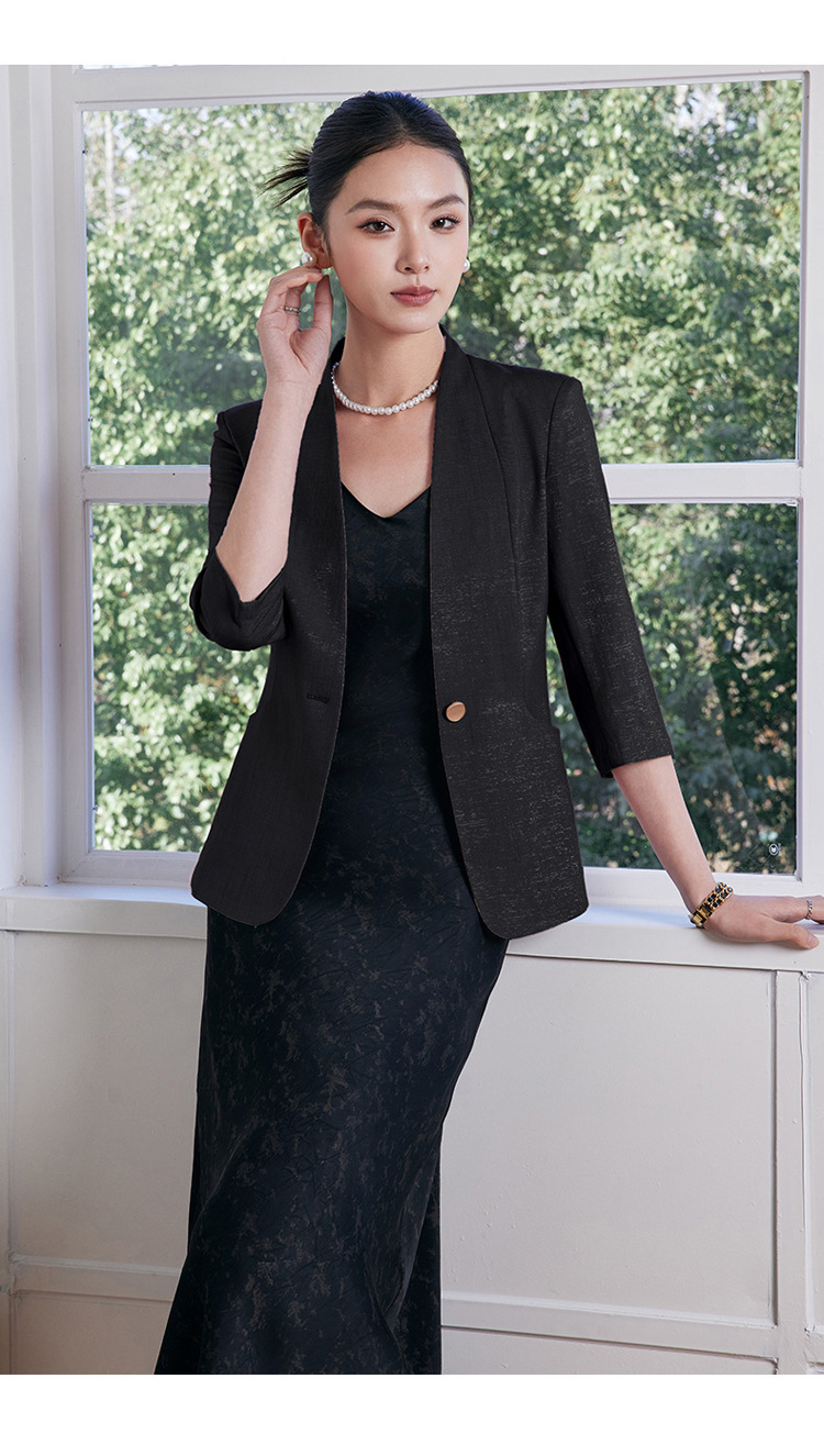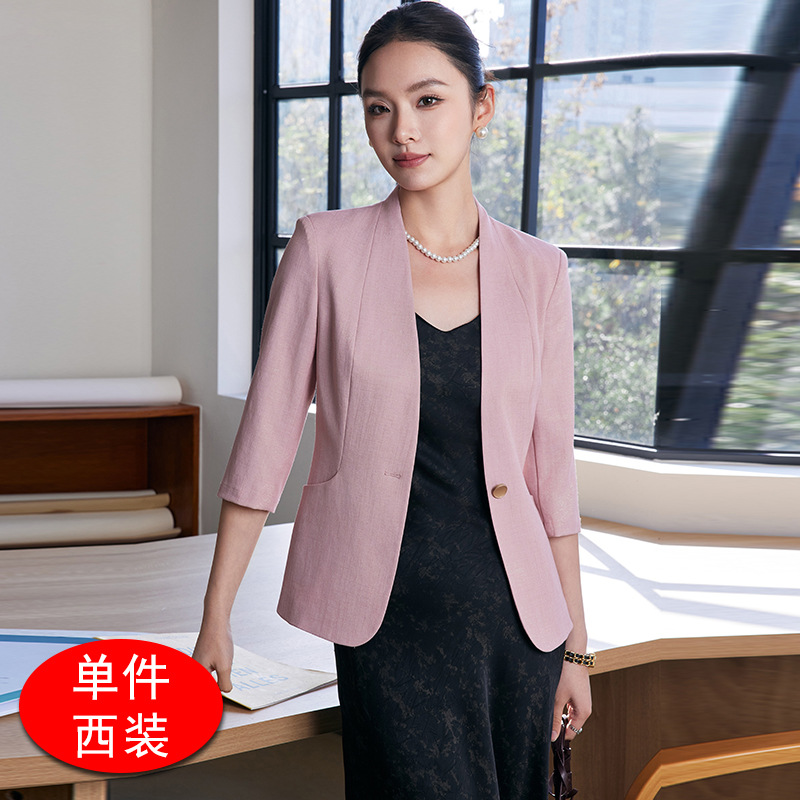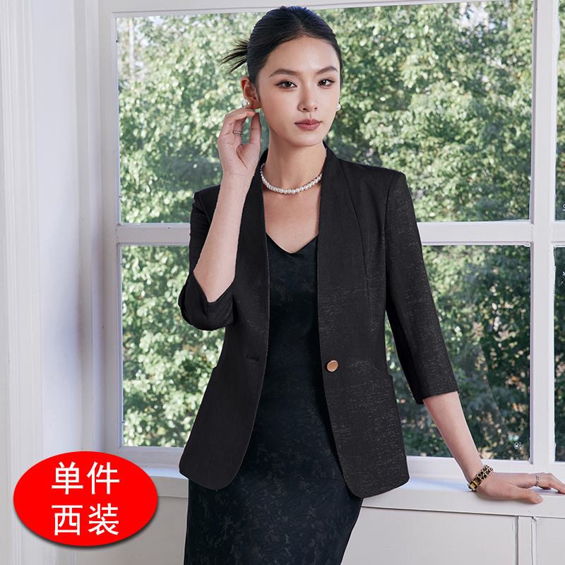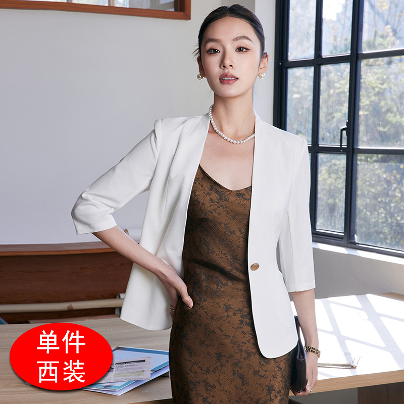2025 여름 새로운 패션 한국 스타일 기질 7 점 소매 세트 재킷 통근 원 버튼 슬림 핏 전문 세트스토어 가기