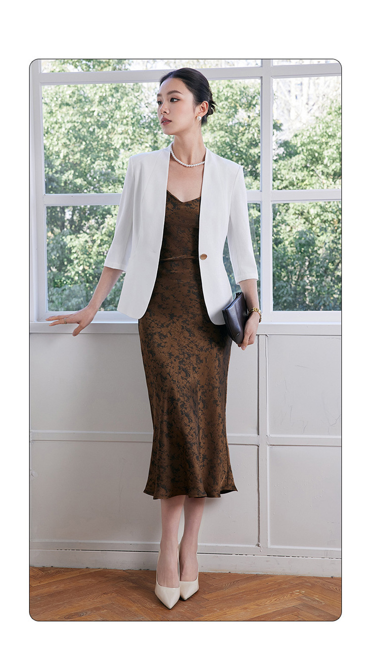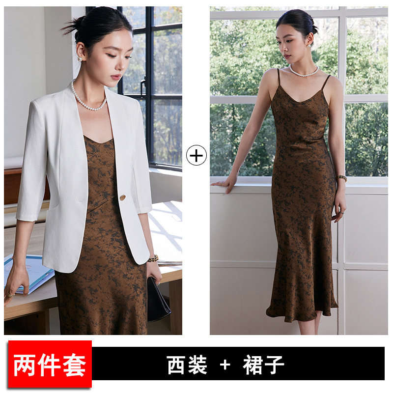 2025 여름 새로운 패션 한국 스타일 기질 7 점 소매 세트 재킷 통근 원 버튼 슬림 핏 전문 세트