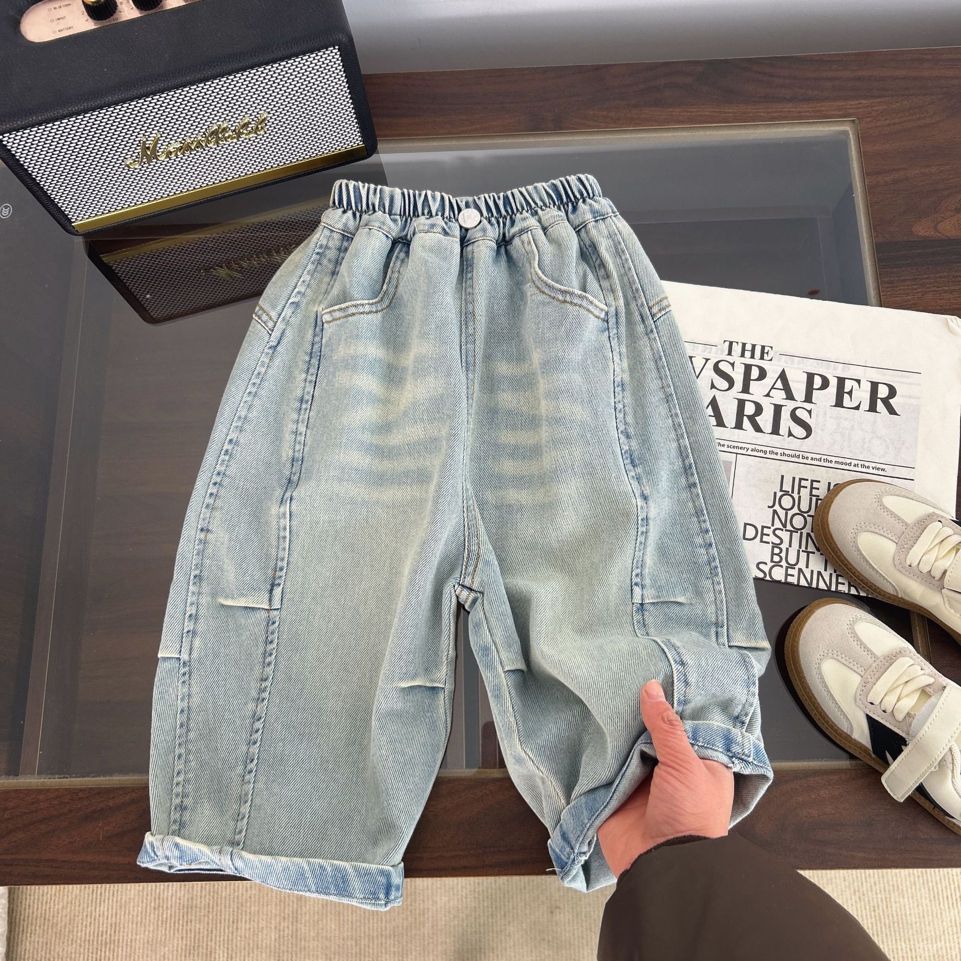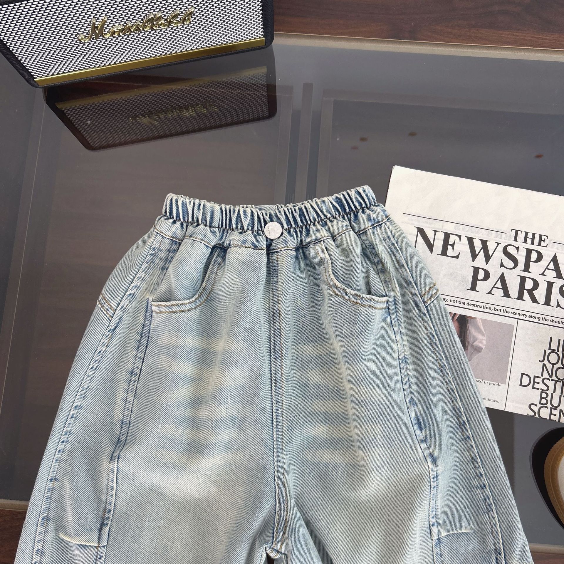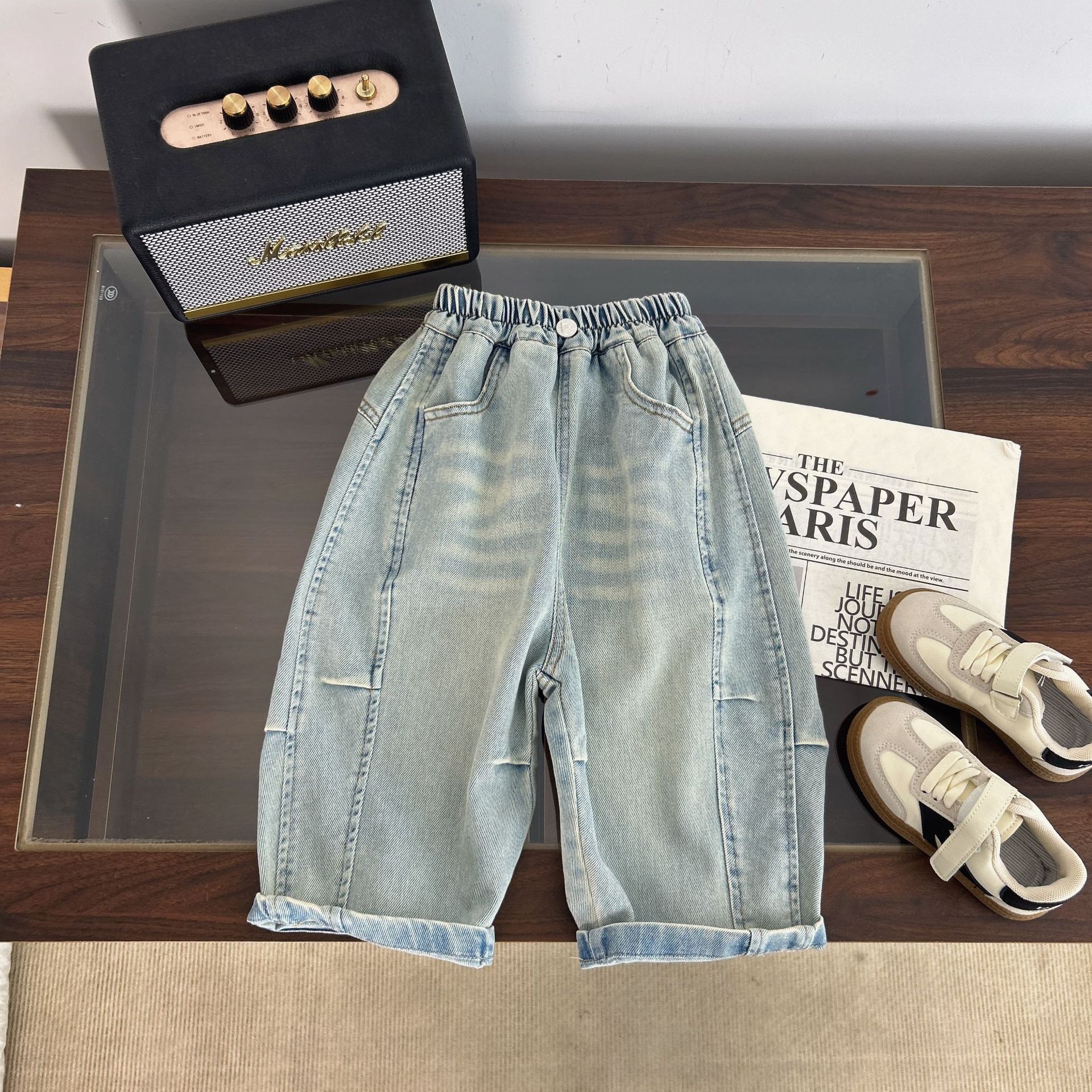 아동복 소년 봄 바지 2025 새로운 스타일 중소형 어린이 주름 청바지 봄, 가을 아기 봄 바지스토어 가기