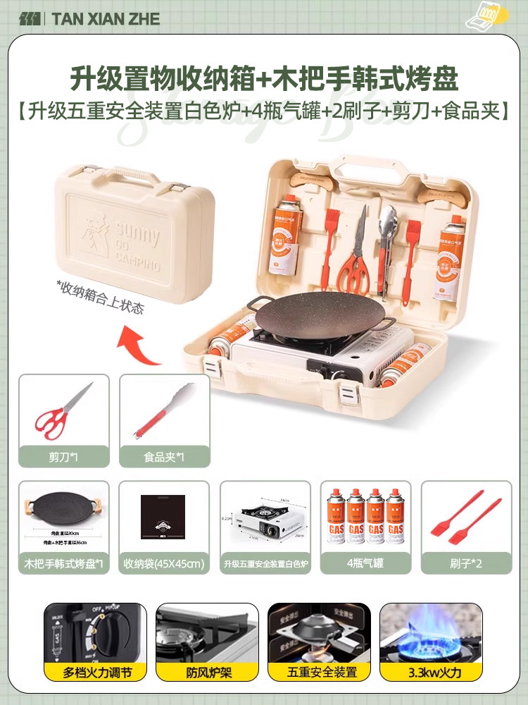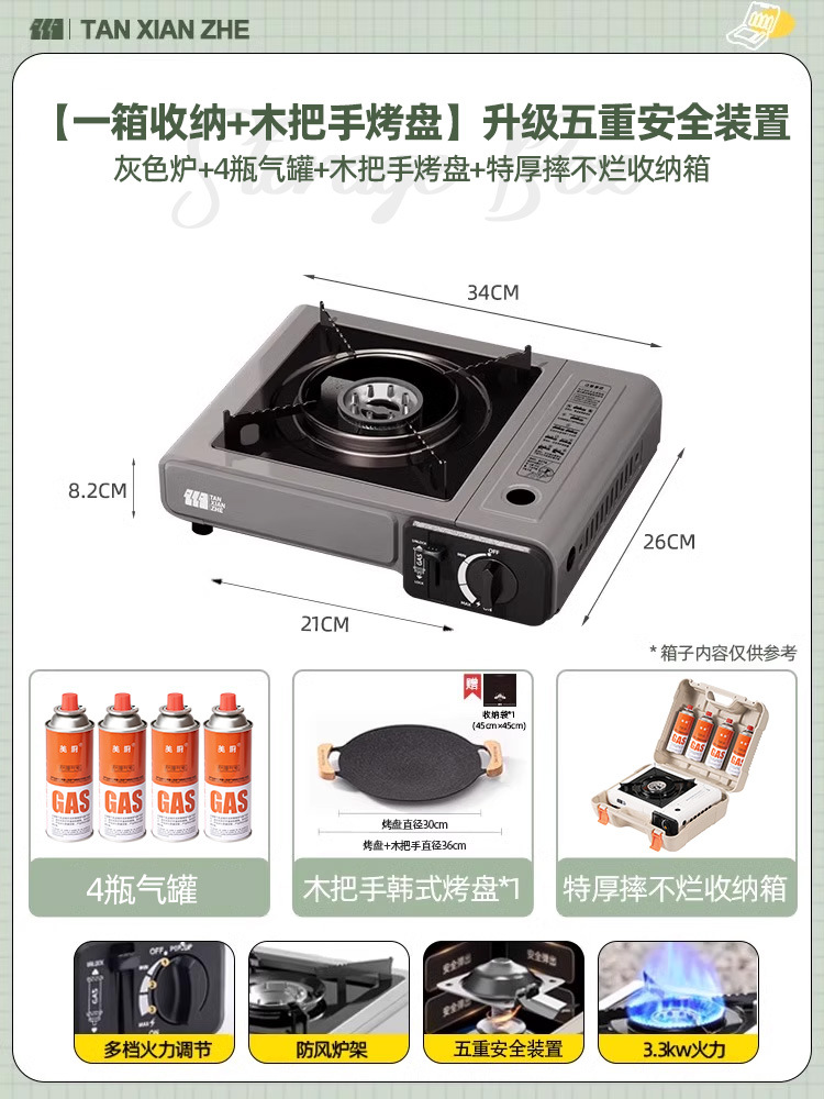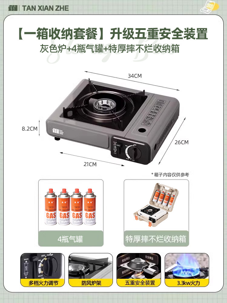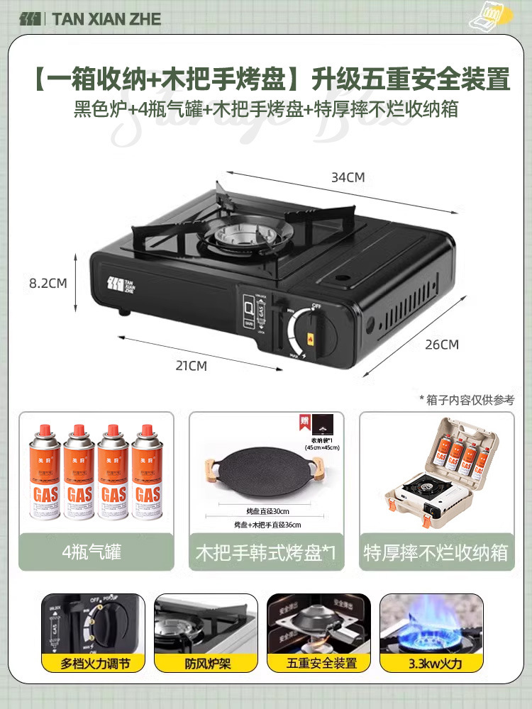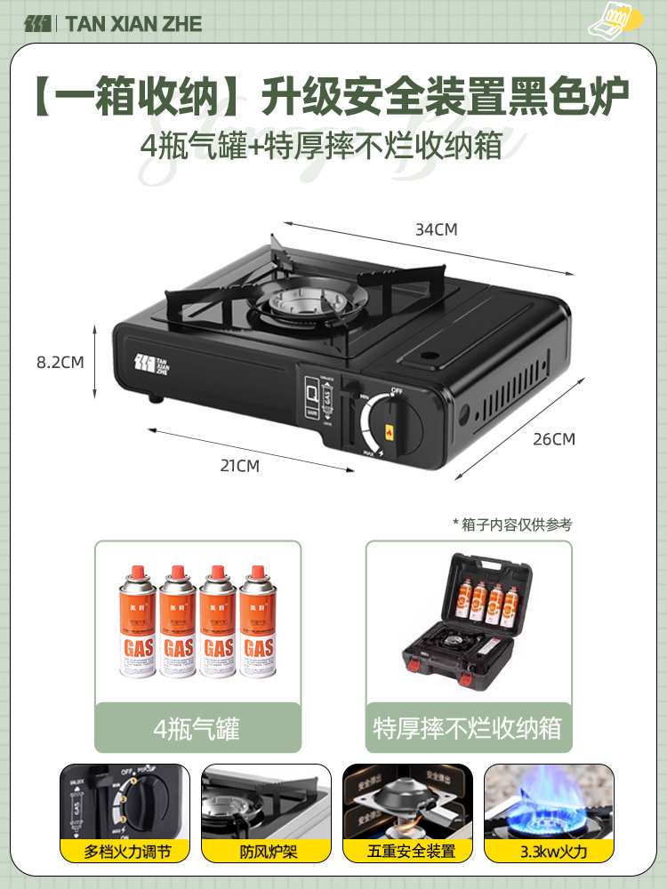 • [한 상자 보관] 업그레이드된 5중 안전 검정색 스토브 + 수입 가스 탱크 4개 + 두껍고 깨지지 않는 보관 상자