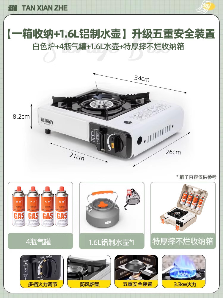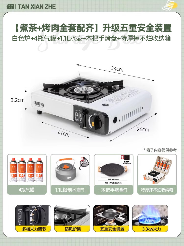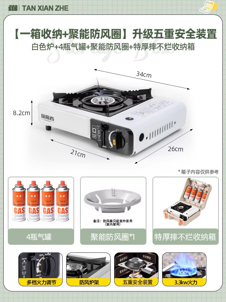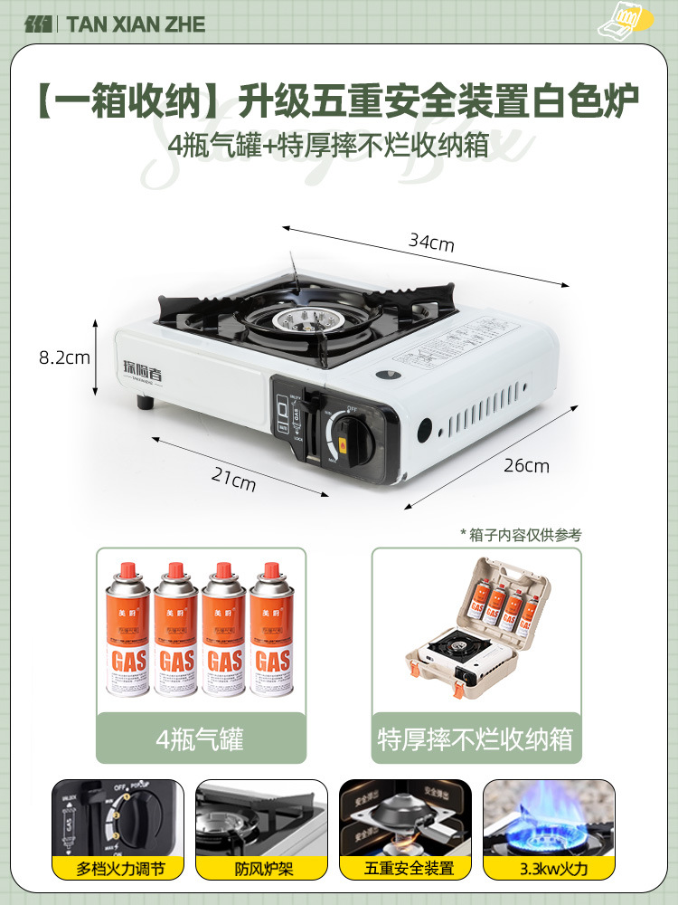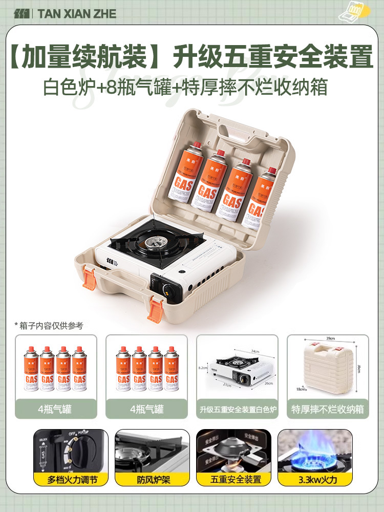 • [한 상자 보관] 업그레이드된 5중 안전 백색 난로 + 수입 가스 탱크 4개 + 두껍고 깨지지 않는 보관 상자