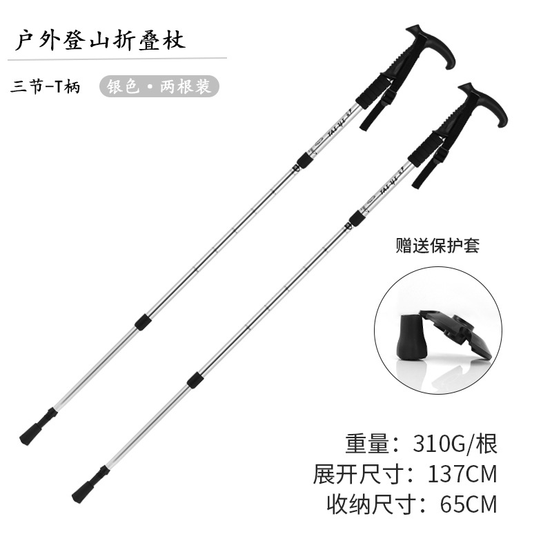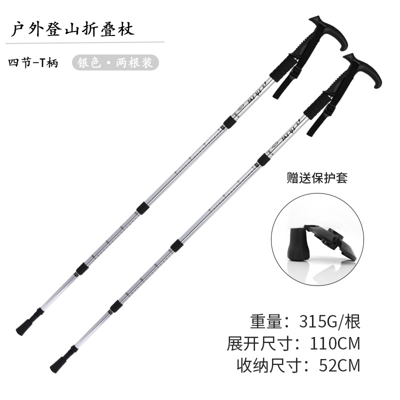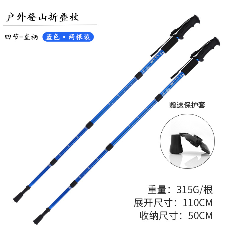 야외 텔레스코픽 클라이밍 스틱 알루미늄 합금 워킹 스틱 워킹 스틱 스트레이트 핸들 곡선 손잡이 3/4 섹션
