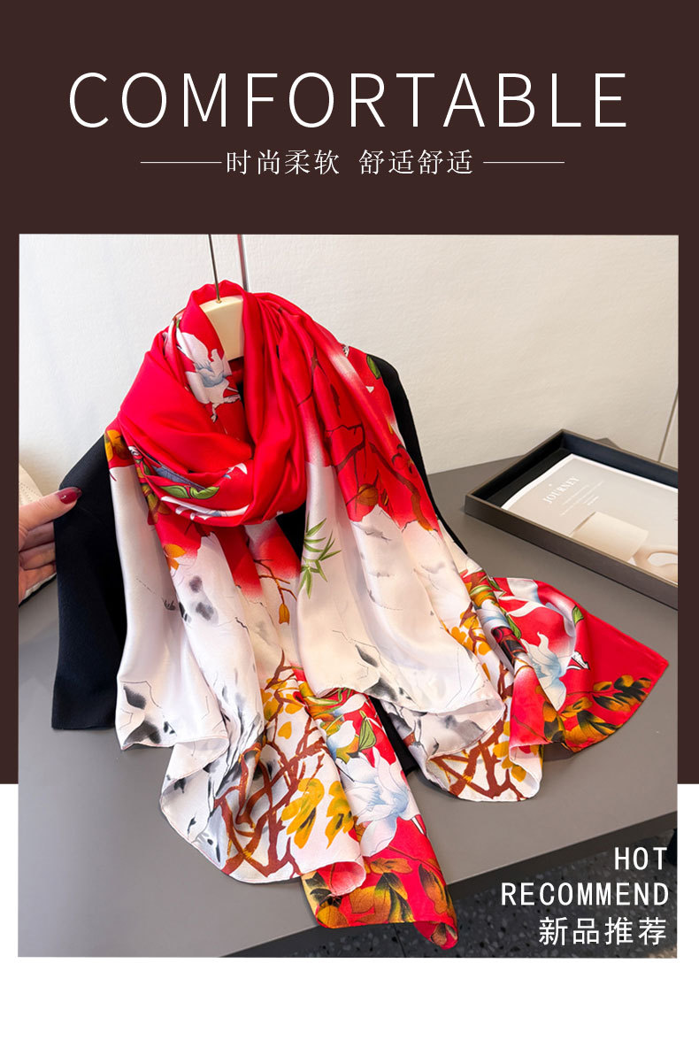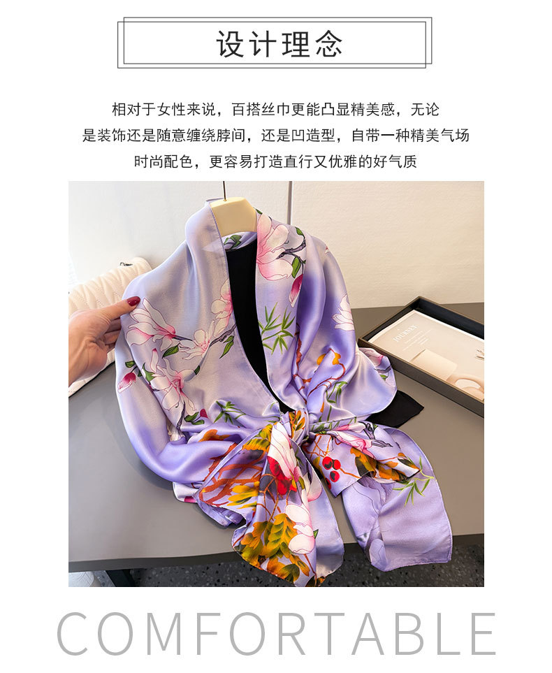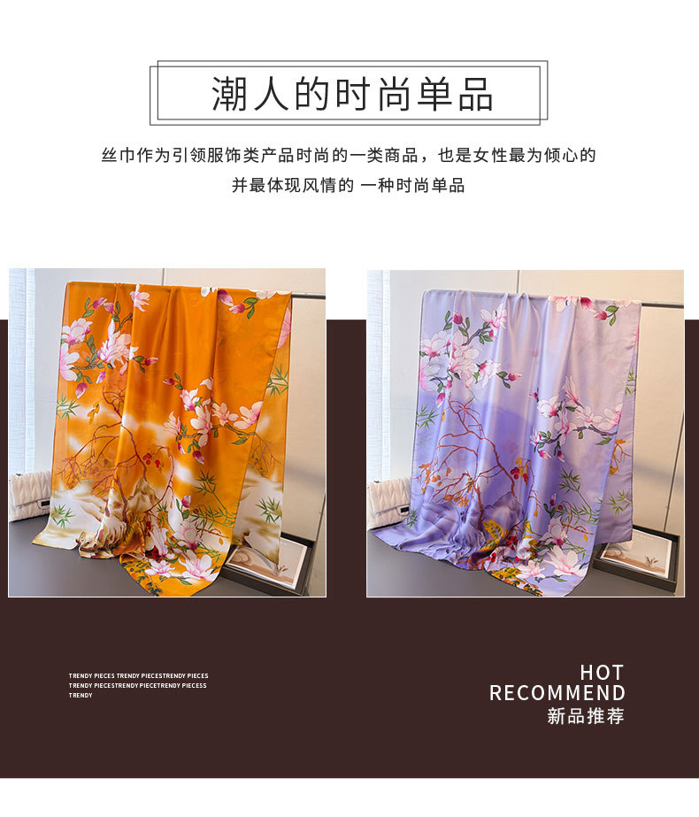 한국식 새 인쇄 시뮬레이션 실키 브로케이드 선스크린 대조 컬러 꽃 실크 스카프 긴 스카프 목도리 올 매치 헤드 스카프 스카프스토어 가기