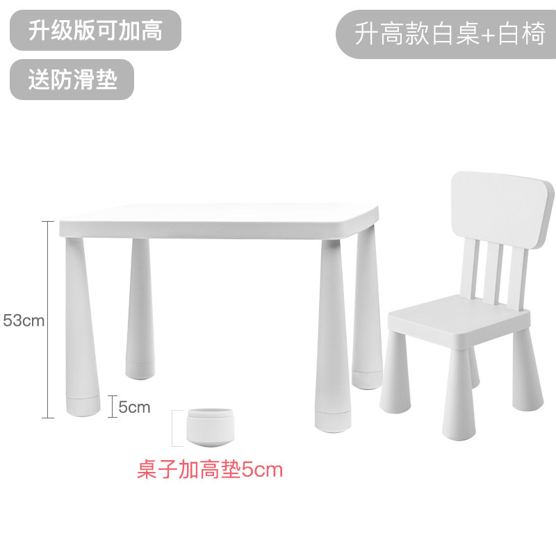 • 흰색 테이블은 들어 올릴 수 있고 흰색 의자에는 미끄럼 방지 스티커가 함께 제공됩니다.