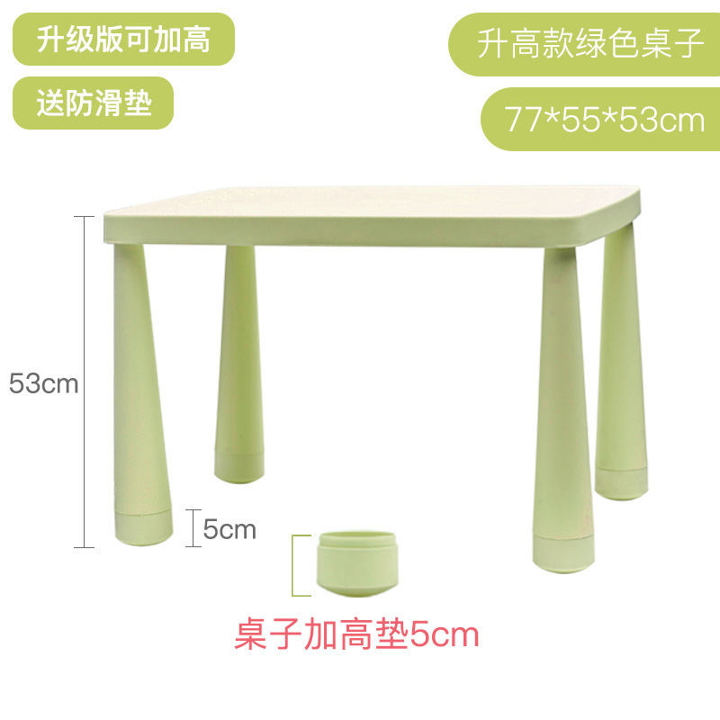 • 녹색 테이블은 들어 올리고 내릴 수 있으며, 녹색 의자에는 미끄럼 방지 스티커가 함께 제공됩니다.