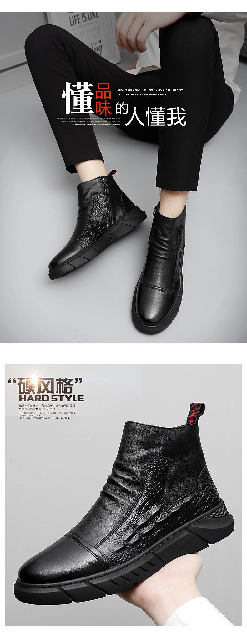 마틴 부츠 남자 악어 패턴 오토바이 신발 영국 스타일 툴링 남자 한국 유행 유행 신발 가을과 겨울에 따뜻한 기모스토어 가기
