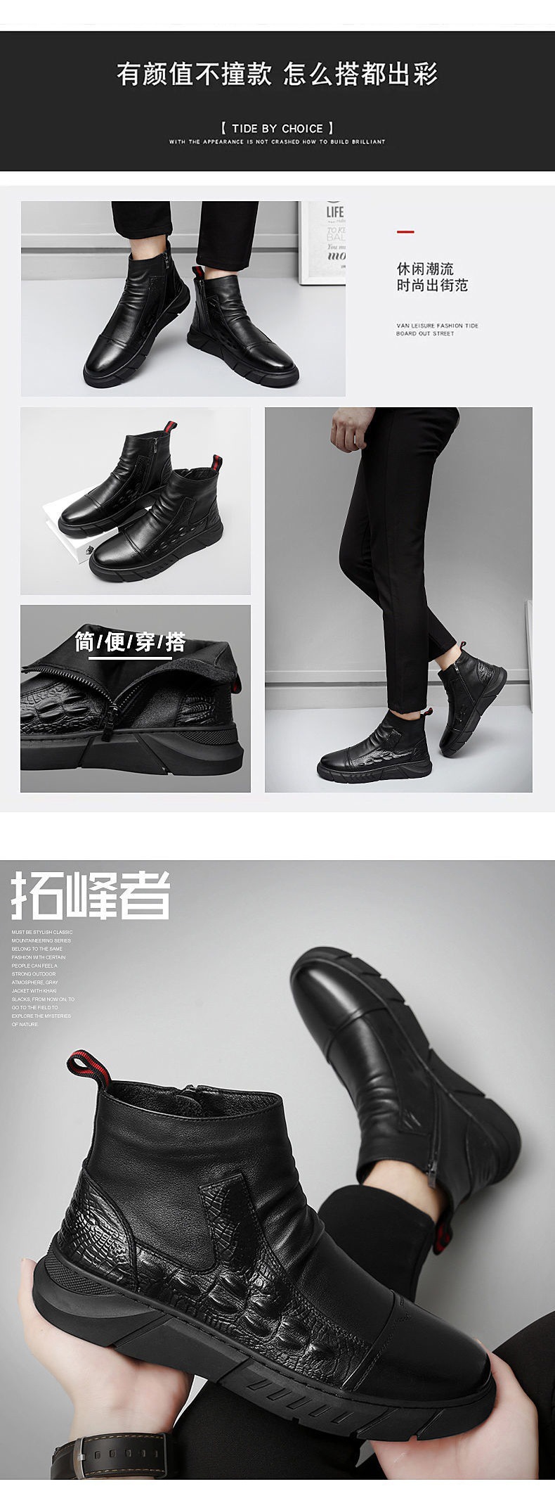 마틴 부츠 남자 악어 패턴 오토바이 신발 영국 스타일 툴링 남자 한국 유행 유행 신발 가을과 겨울에 따뜻한 기모