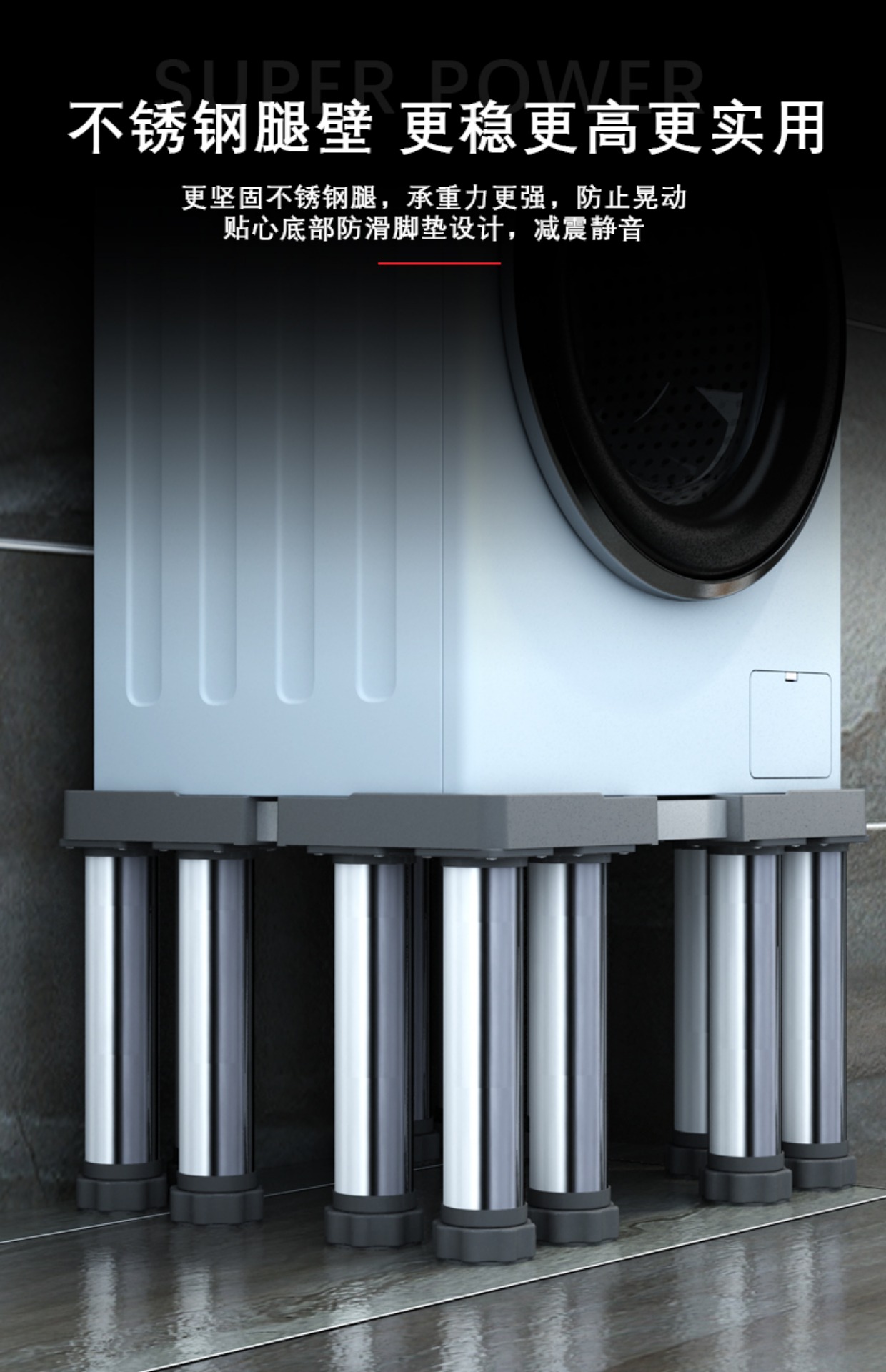 세탁기베이스 프레임 스테인레스 스틸 높은 브래킷 패드 높이 유니버설 완전 자동 롤러 펄스터 모바일 브래킷