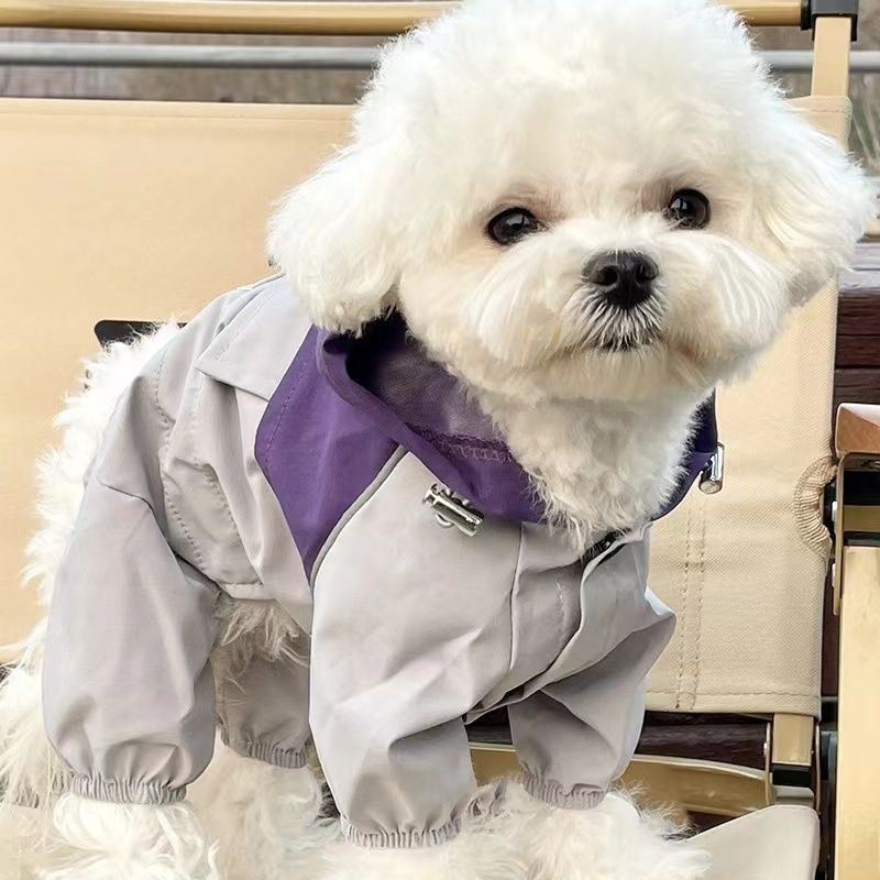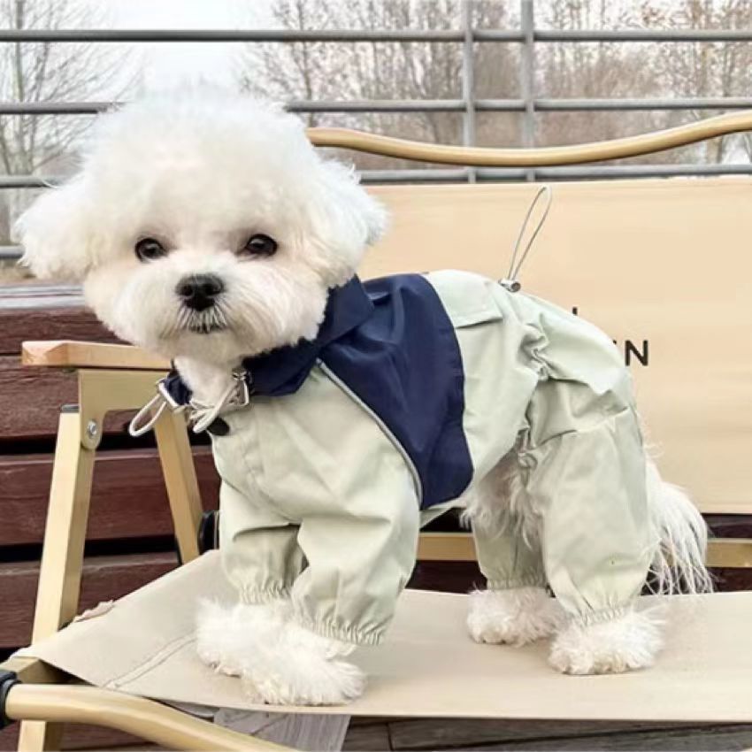 애완 동물 비옷 방수 4 개 다리 작업복 대비 색상 스티칭 충전 옷 방풍 수제 고양이 개 테디 Bixiong