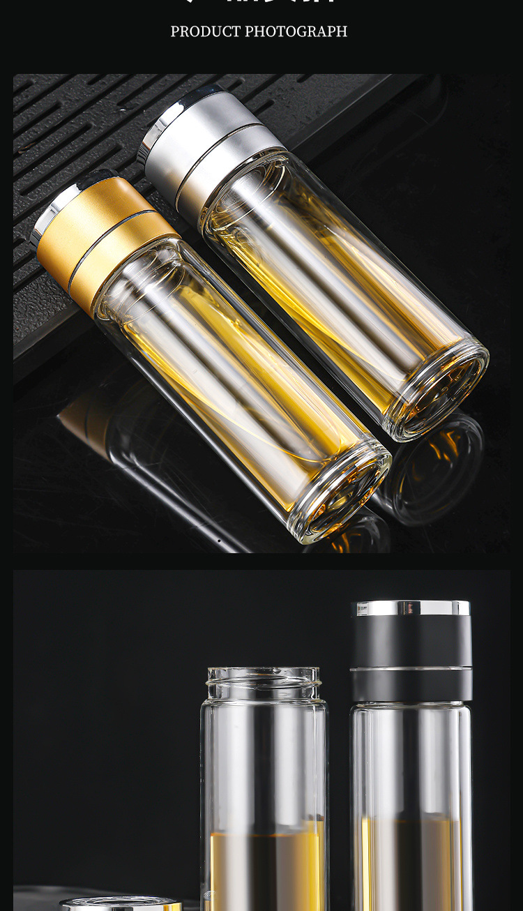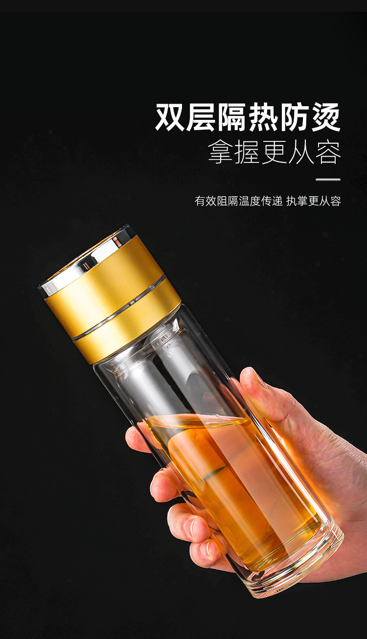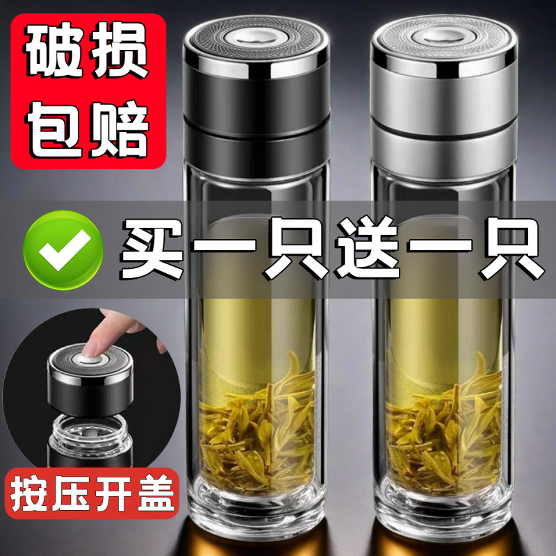 유리 원 버튼 프레스 오픈 뚜껑 차 분리 휴대용 더블 레이어 두꺼운 폭발 방지 단열 남성 비즈니스 컵 새로운