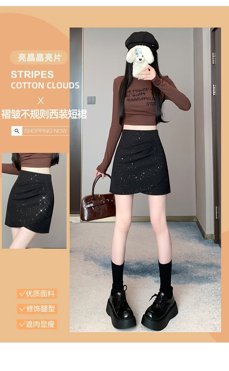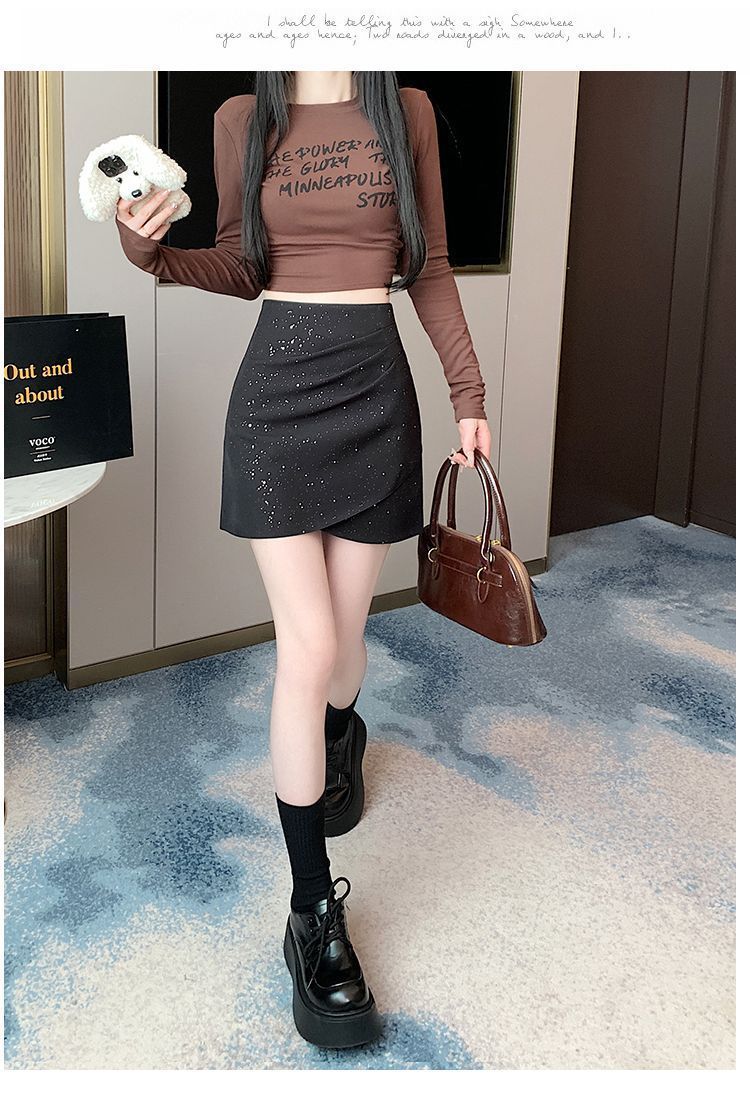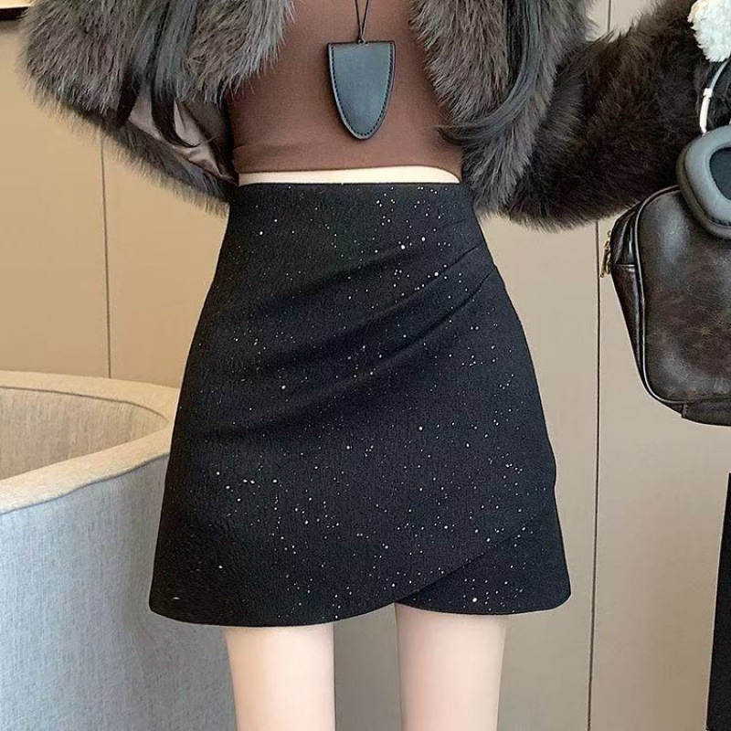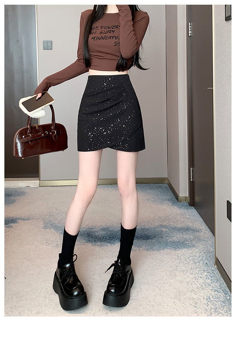불규칙한 반짝임 2025 년 치마 짧은 치마 Sequin 봄과 여름 슬리밍 높은 허리 A 라인 스커트