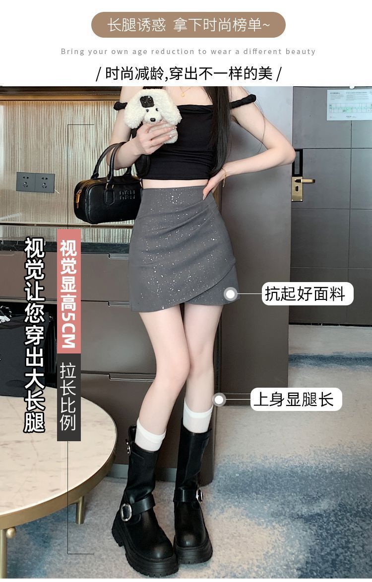 불규칙한 반짝임 2025 년 치마 짧은 치마 Sequin 봄과 여름 슬리밍 높은 허리 A 라인 스커트스토어 가기
