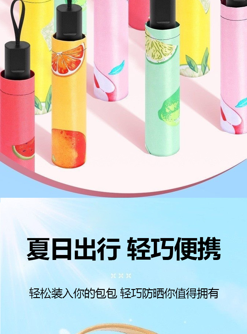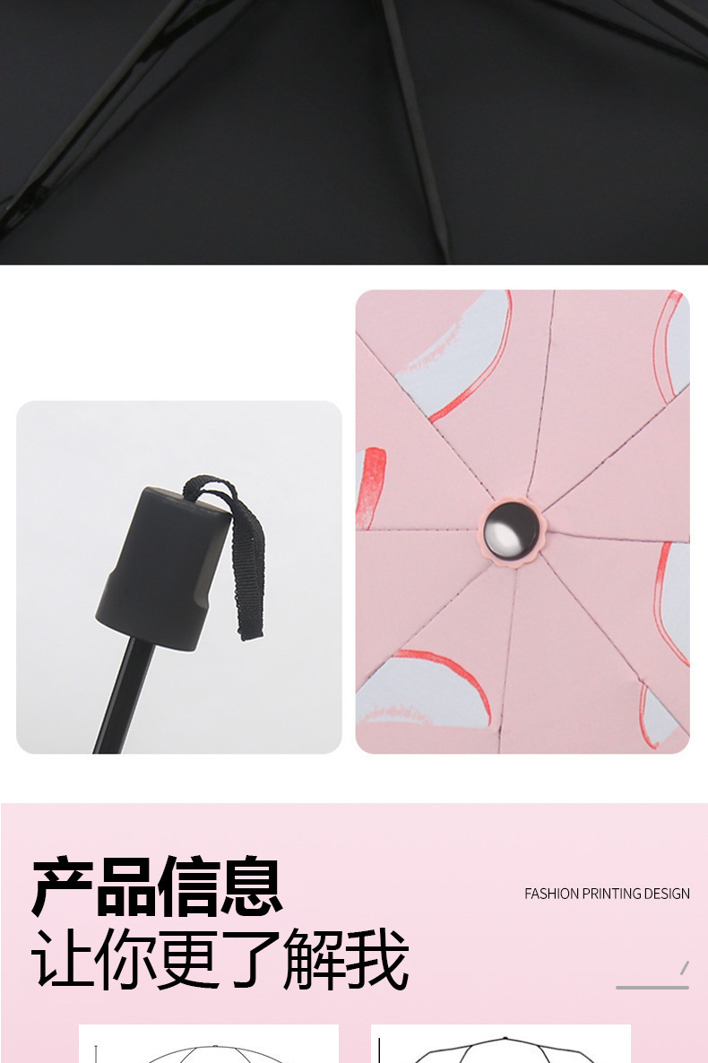 우산 과일 무늬 자동 자외선 차단 햇빛/비 겸용 접이식 블랙 글로스 인쇄 광고 로고 양산